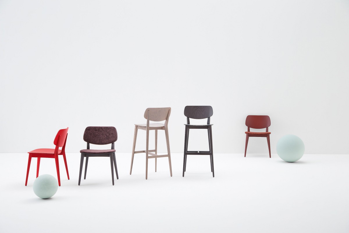 - Ein komplettes Sortiment an Stühlen, Sesseln, Loungesesseln, Barhockern und Tischen mit verführerisch süßen Linien;
