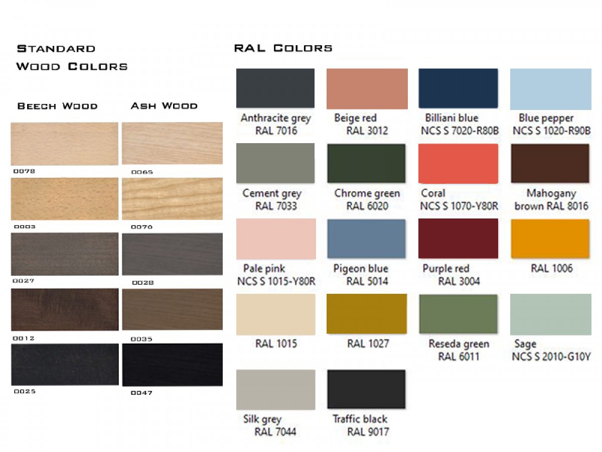 - Erhältlich in vielen verschiedenen Holzfarben oder RAL-Farben.