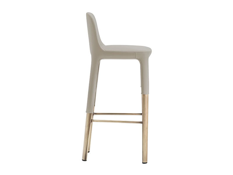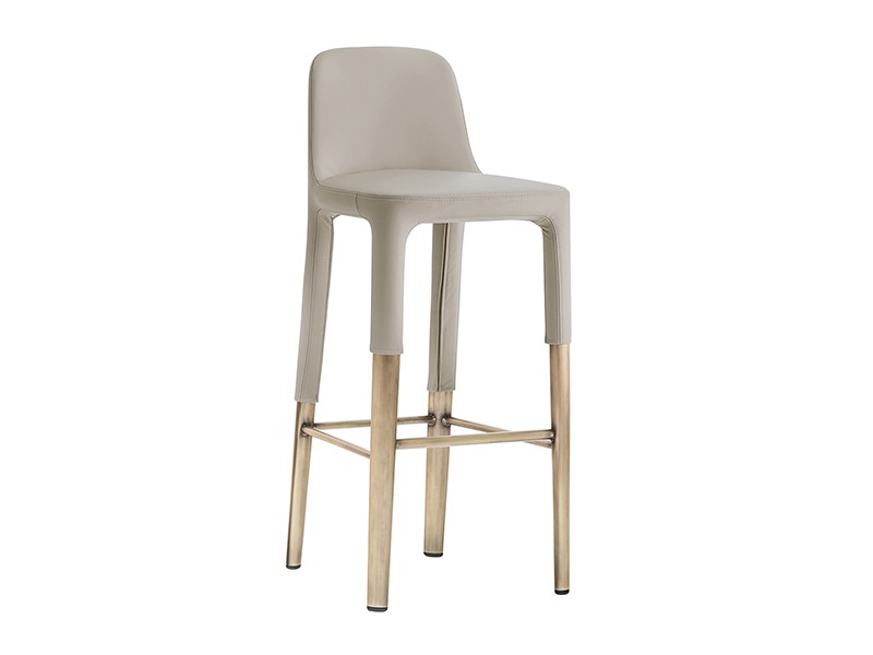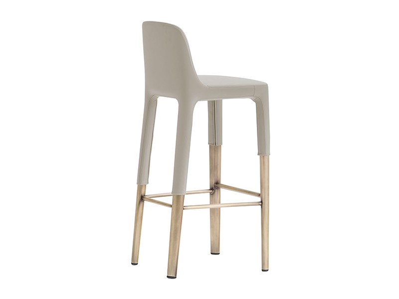 - Barhocker mit gepolsterter Schale aus Polyurethanschaum mit elastischen Gurten und Stahlrohrbeinen.