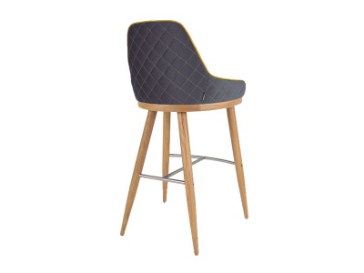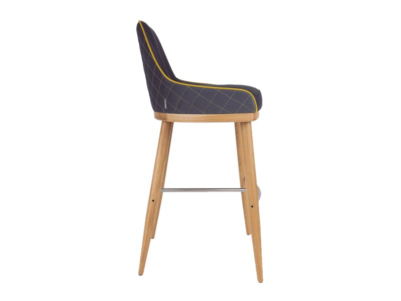 - Holzbarhocker aus Eschenholz mit einer Metallfußstütze.