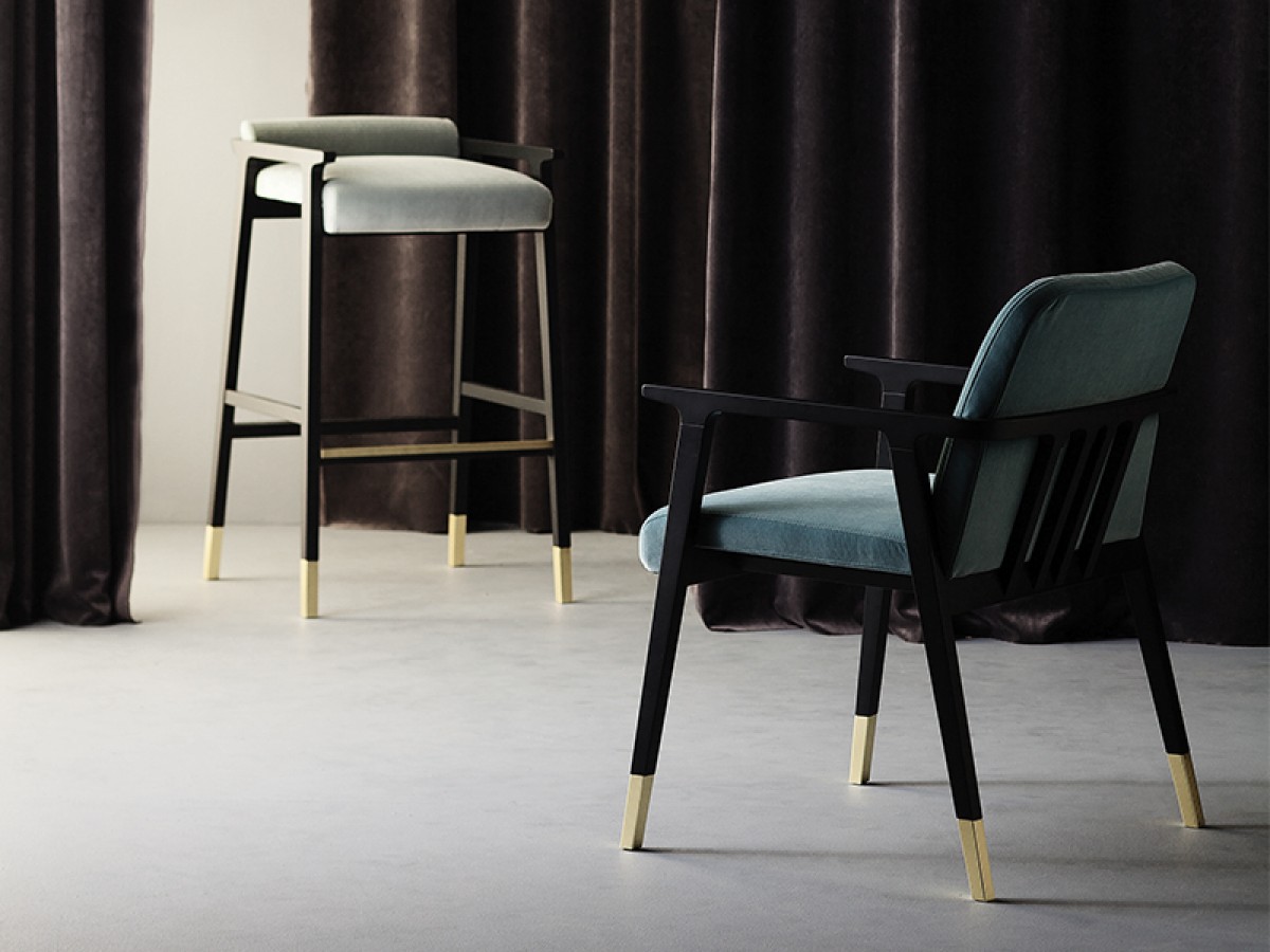 - Barhocker mit Buchenholz.