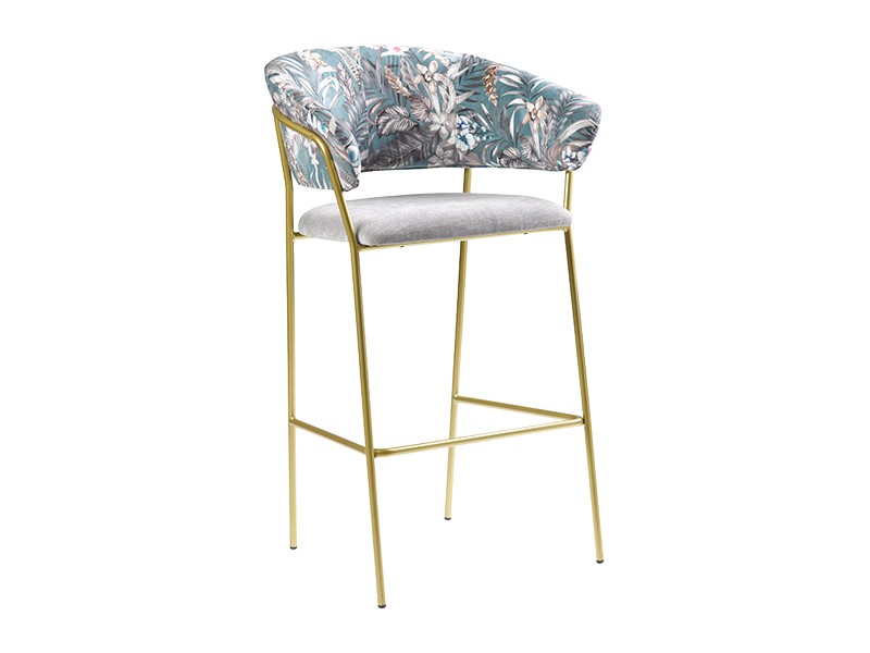 - Die Polsterung des Barhockers bietet die Möglichkeit, verschiedene Stile miteinander zu kombinieren, indem ein einfarbiger Stoff für die Sitzfläche und eine bedruckte Farbe für die Rückenlehne verwendet werden kann. Diese besondere Kombination verleiht dem Barhocker eine persönliche Note und ermöglicht es Ihnen, einen individuellen Look zu kreieren, der Ihren persönlichen Vorlieben entspricht.