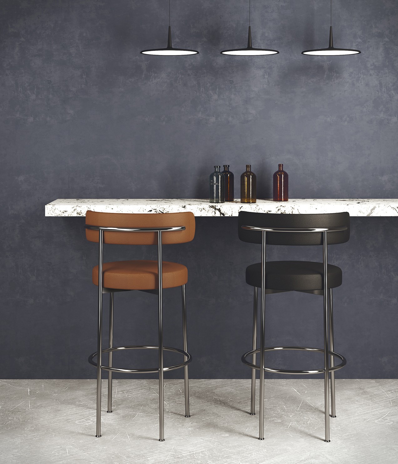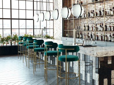 - Ein sehr trendiger Barhocker aus verschiedenen Winkeln und Kurven, der sich natürlich in jedes moderne Innendesign einfügt.
