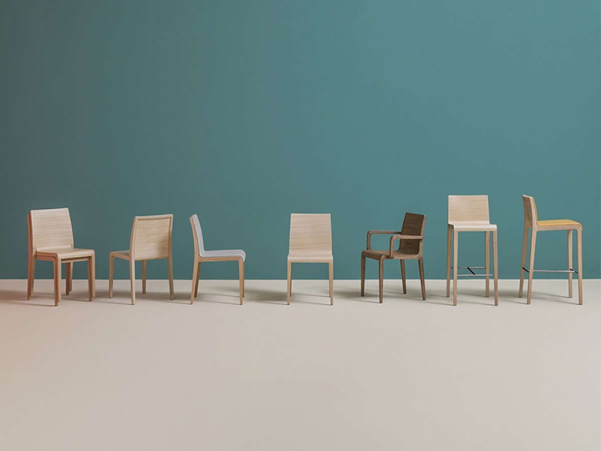 - Young Barhocker, Schale aus Sperrholz Eiche, Aufbau aus Massiveiche.