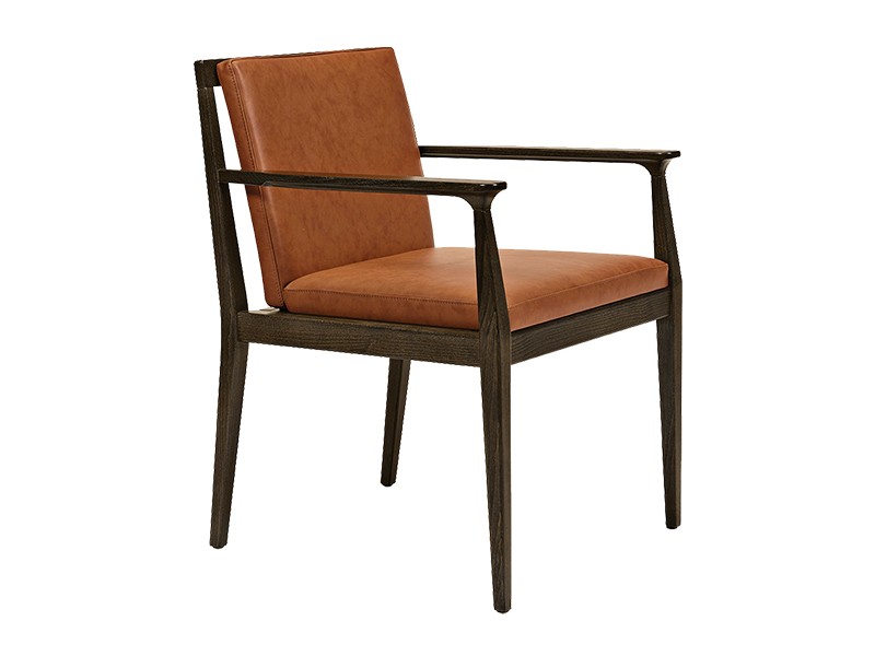 - Holzstuhl mit Armlehnen, mit Gestell aus gebeiztem Buchenholz.
