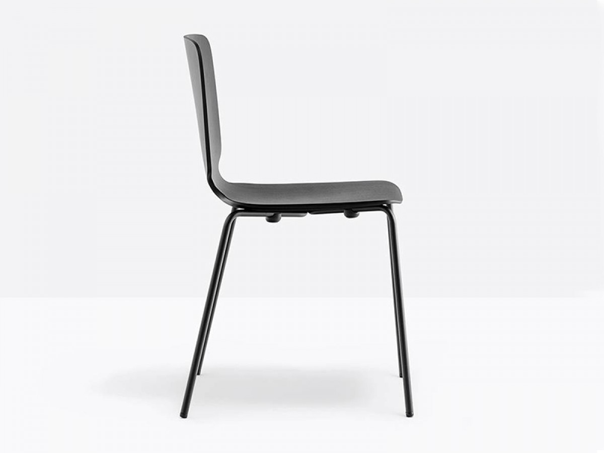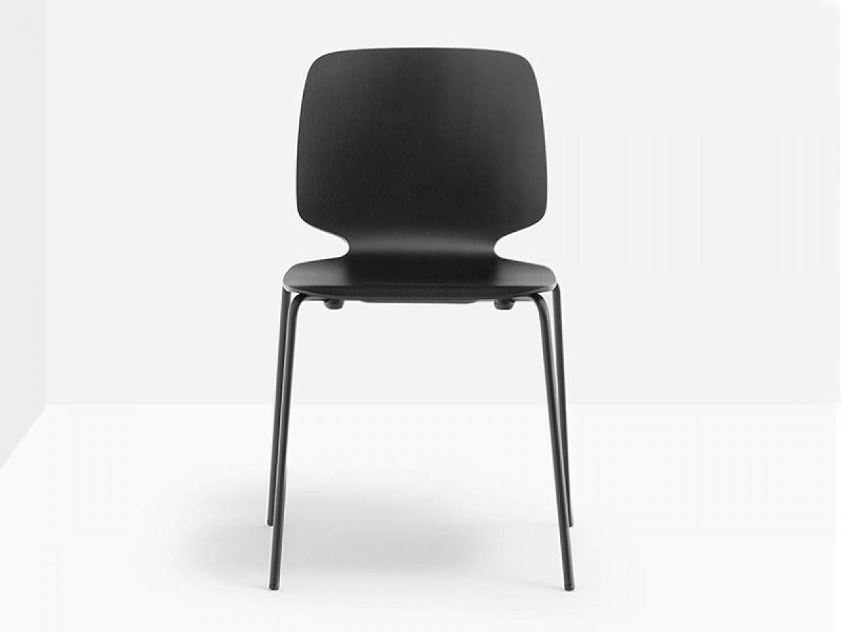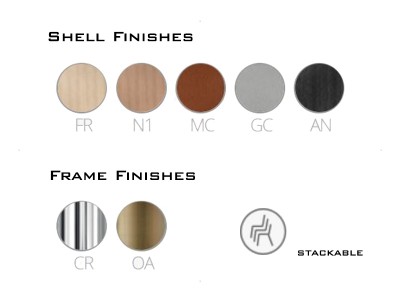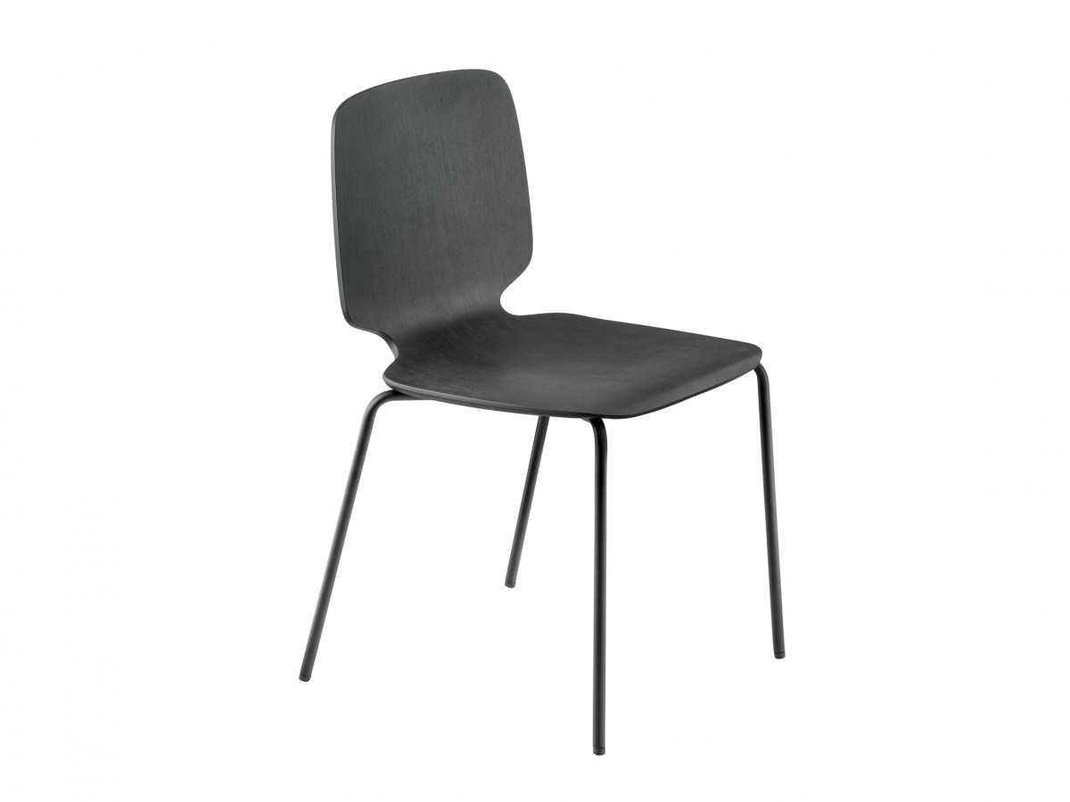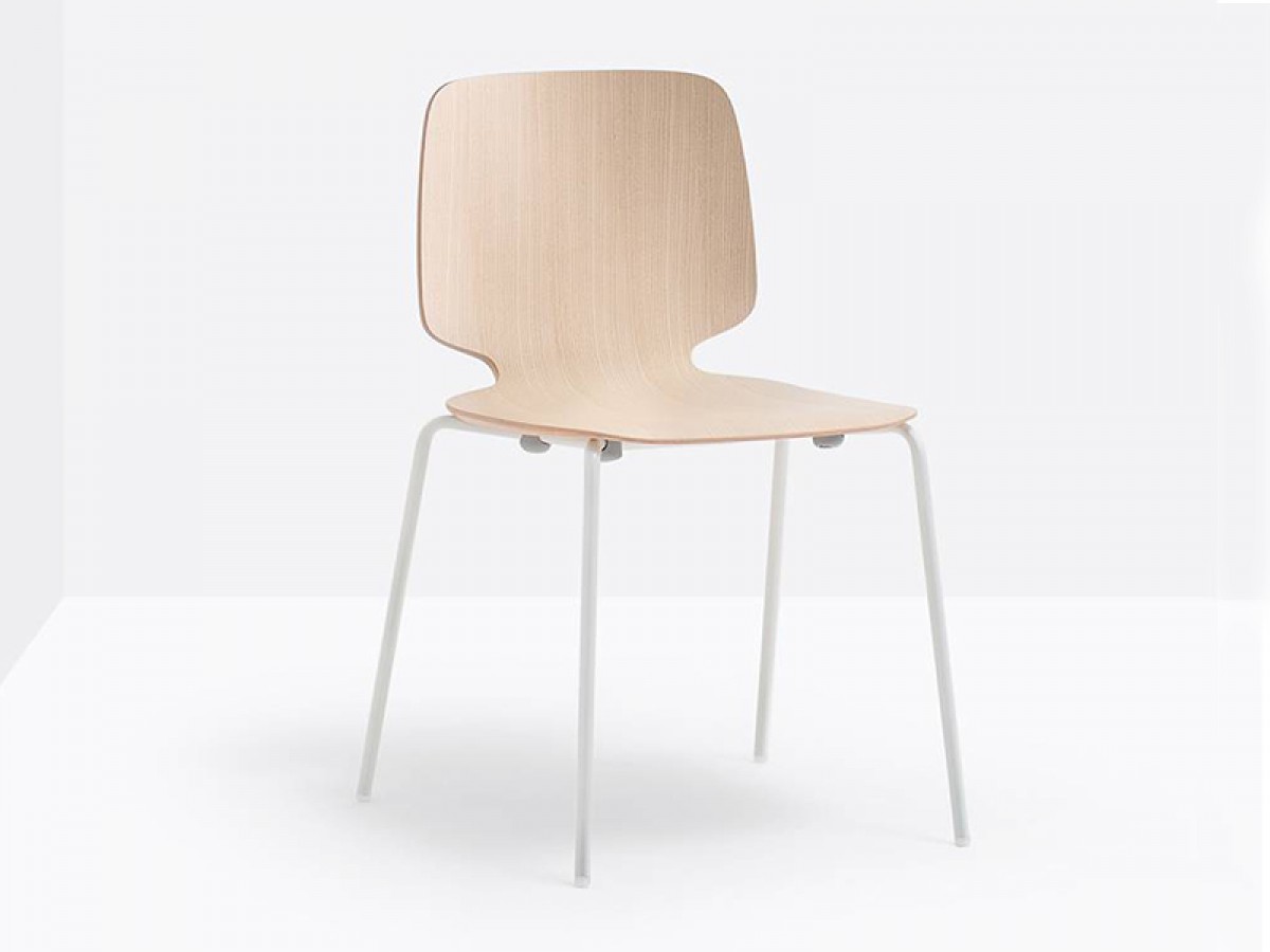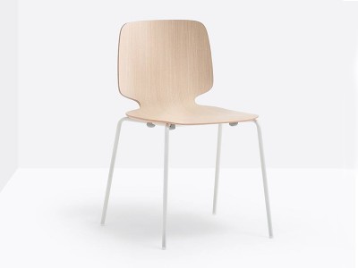 - Stuhl mit Sitzschale aus furniertem mehrschichtigem Eschen-Sperrholz in variabler Stärke und Gestell aus Edelstahl-Rohr Ø16 mm.