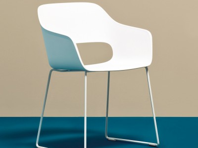 - Armlehnstuhl mit Sitzschale aus Polypropylen und Kufen-Gestell aus Rohr Ø10 mm.