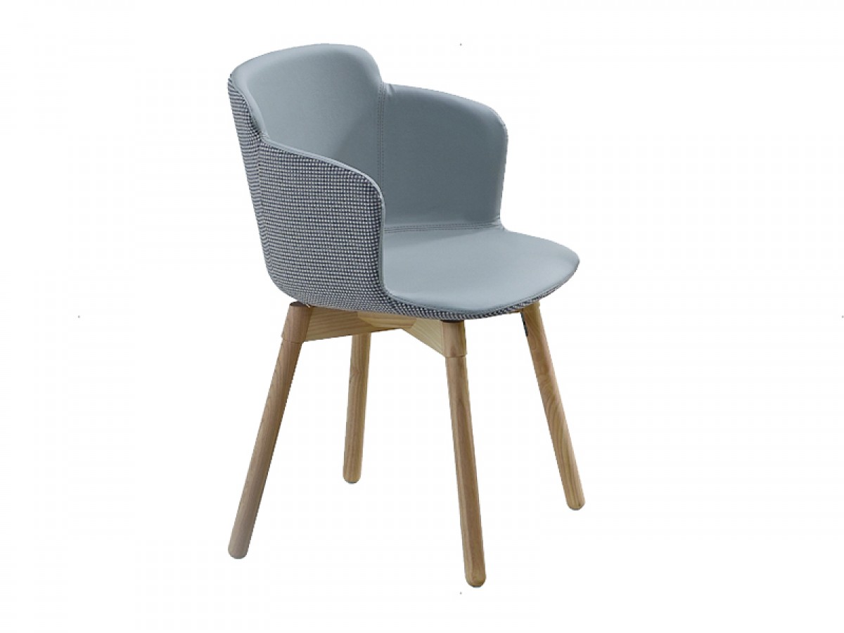 - Restaurantstuhl mit Armlehnen und Holzsockel.
