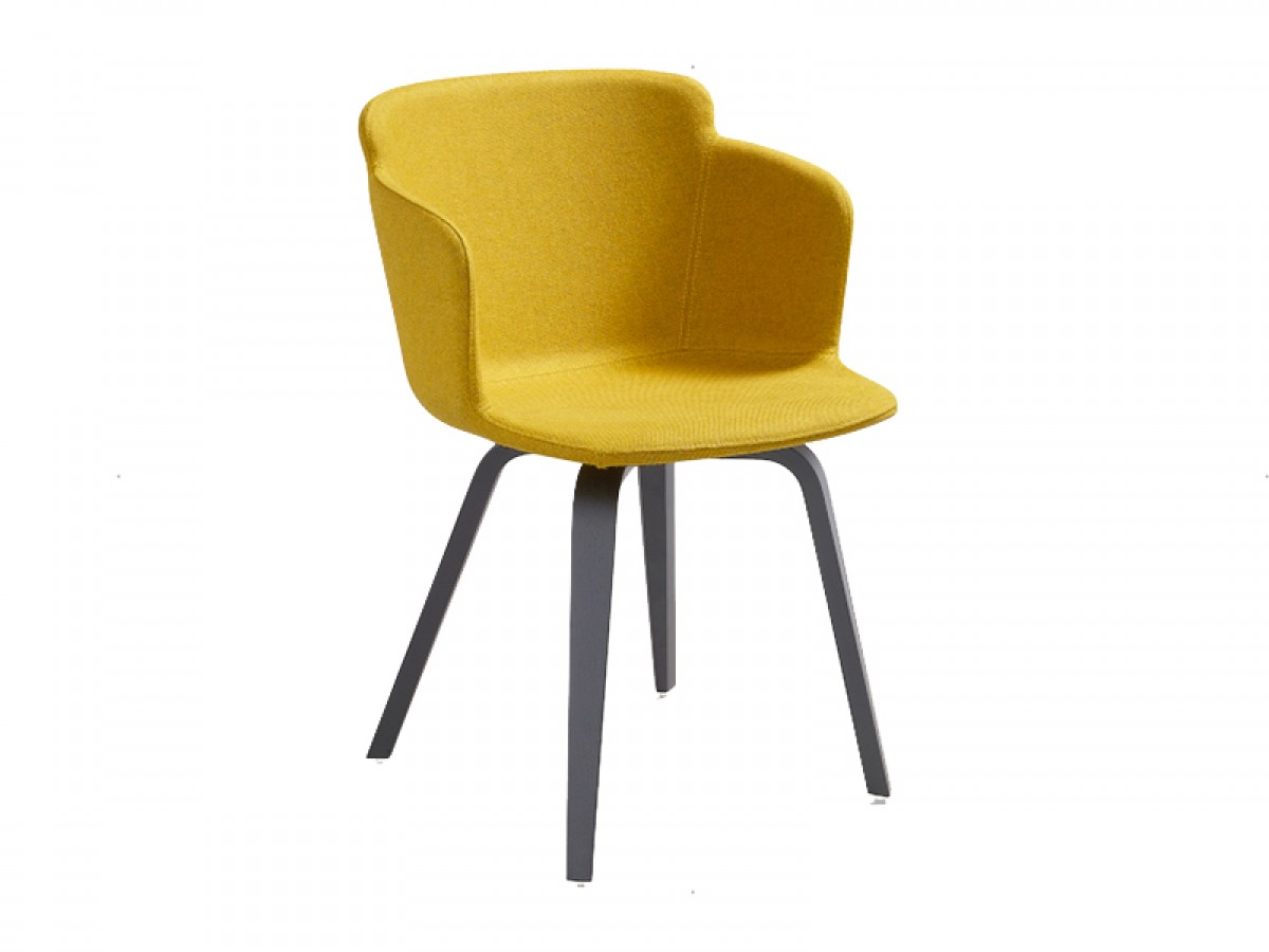 - Restaurantstuhl mit Armlehnen und Holzsockel.