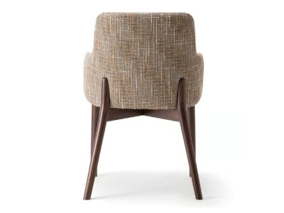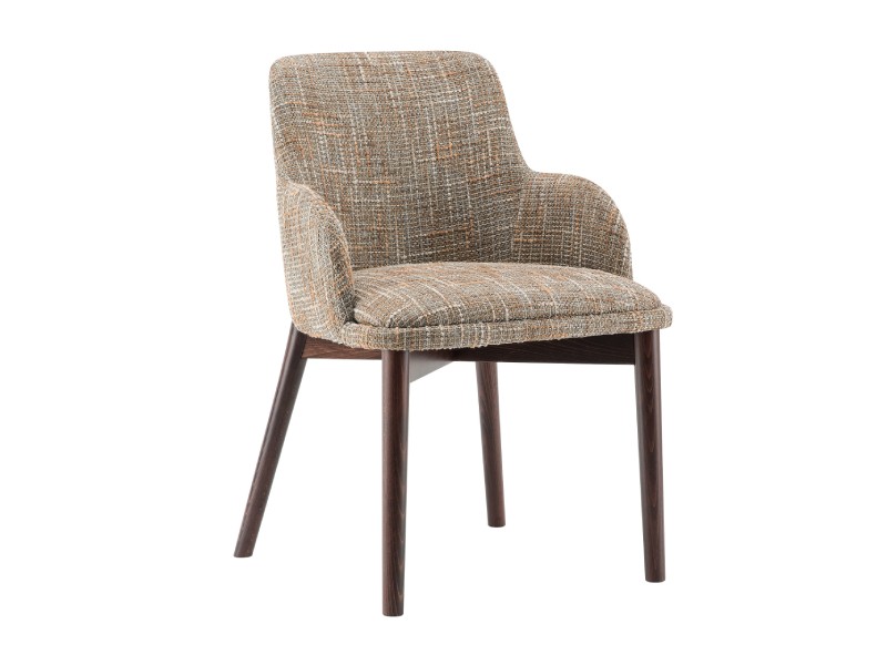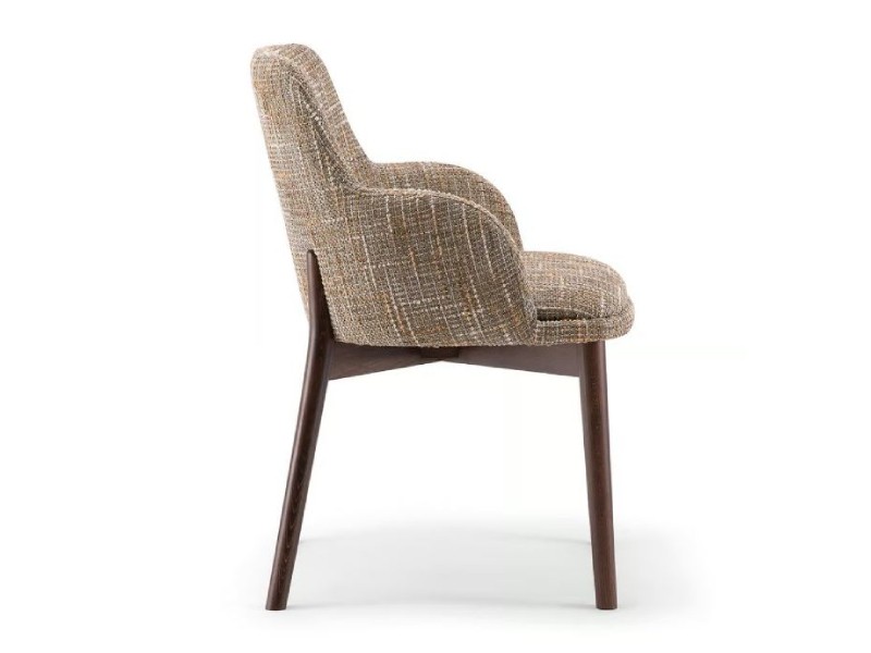 - Die Sitzfläche und die Rückenlehne von Celine A können mit einer großen Auswahl an Stoffen und Leder bezogen werden, was die Holzstruktur noch raffinierter macht.