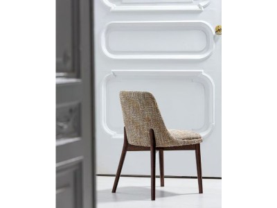 - Charakteristisch für den Beistellstuhl Celine S ist das Detail der Holzbeine, die sich elegant um die Rückenlehne winden.