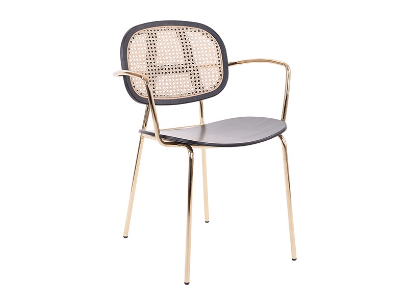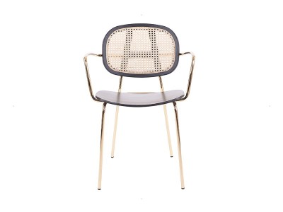 - Eternity ist ein zeitgemäßer Stuhl, der sich durch seine Rückenlehne aus Rohrgeflecht und seine faszinierenden Armlehnen auszeichnet, die seinem modernen Design eine interessante Note verleihen.