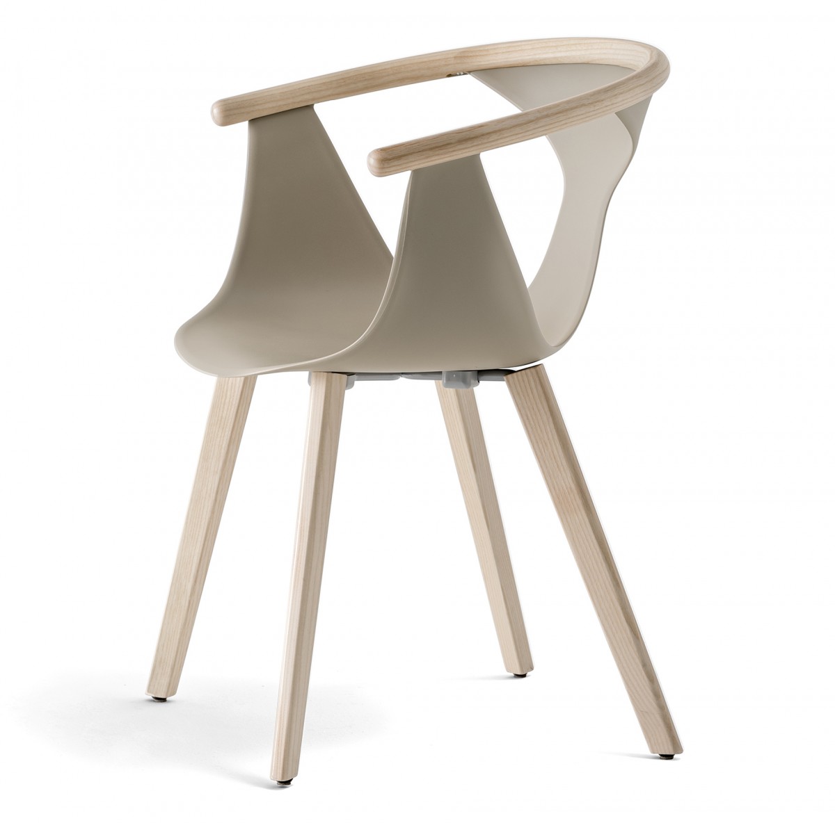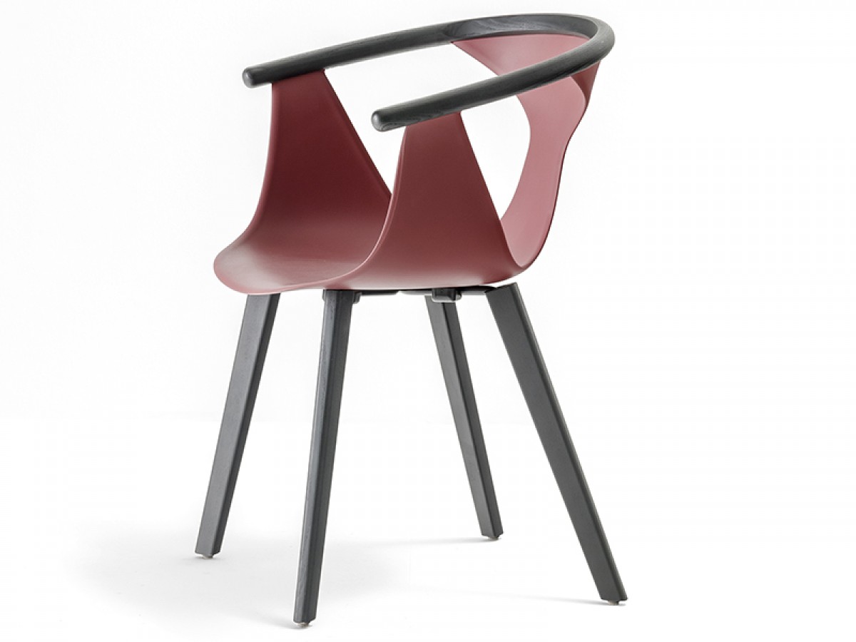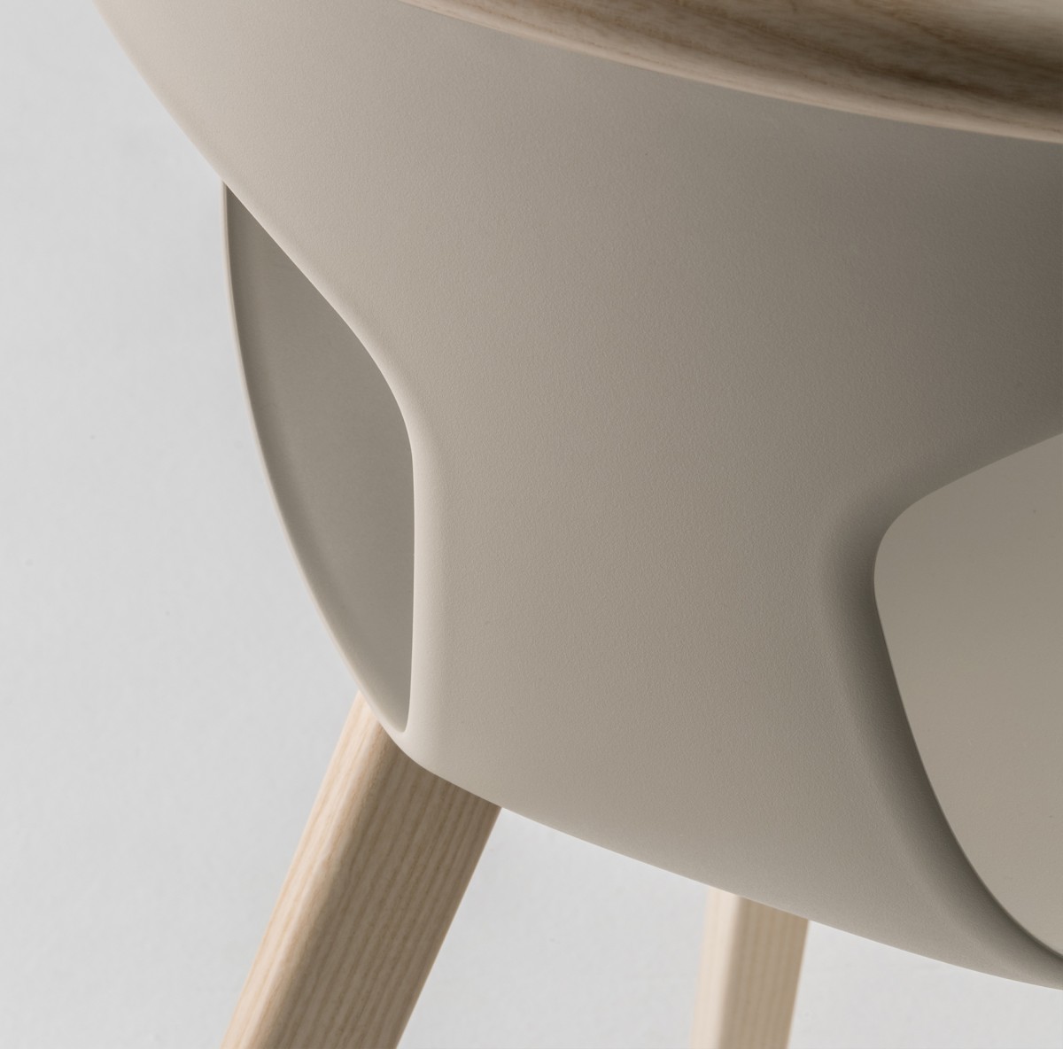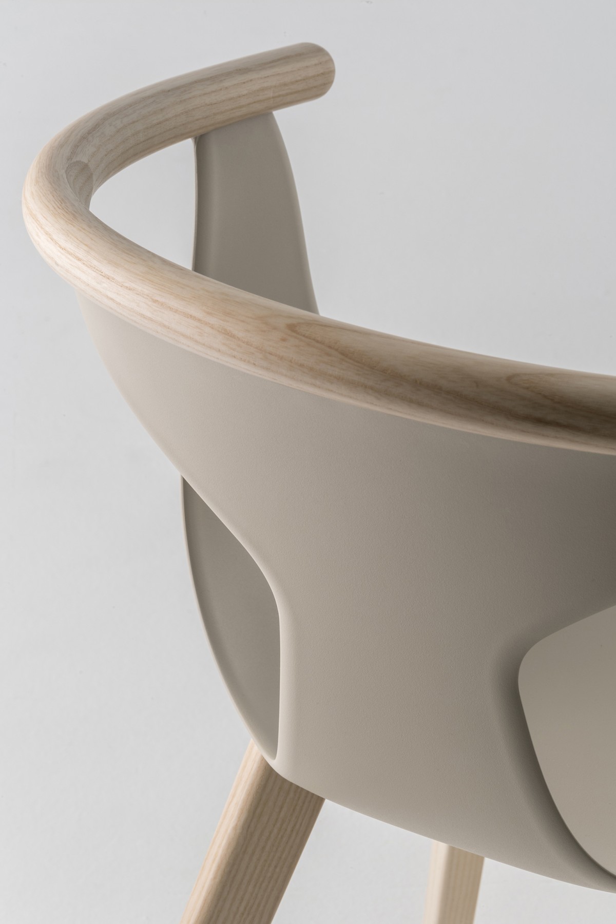 - Die Vielseitigkeit und Funktionalität der Kollektion wird durch mehrere Farbkombinationen zwischen dem Holz und der bequemen Schale gewährleistet , die mit Fuße aus Esche oder Stahlrohr kombiniert werden können, die letzte Version ist stapelbar.