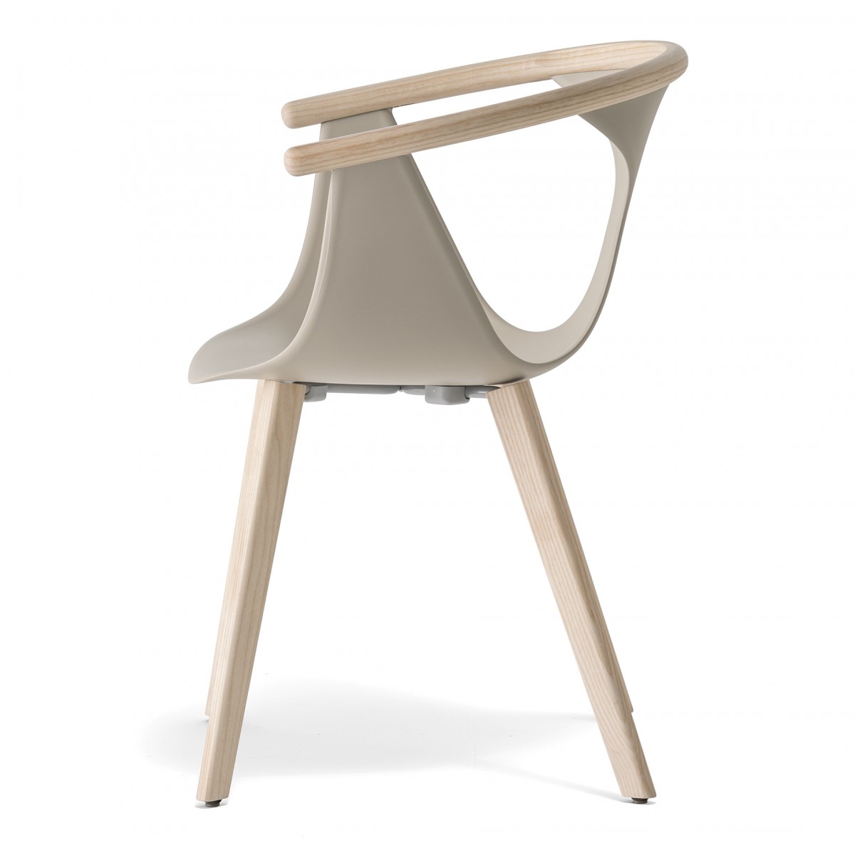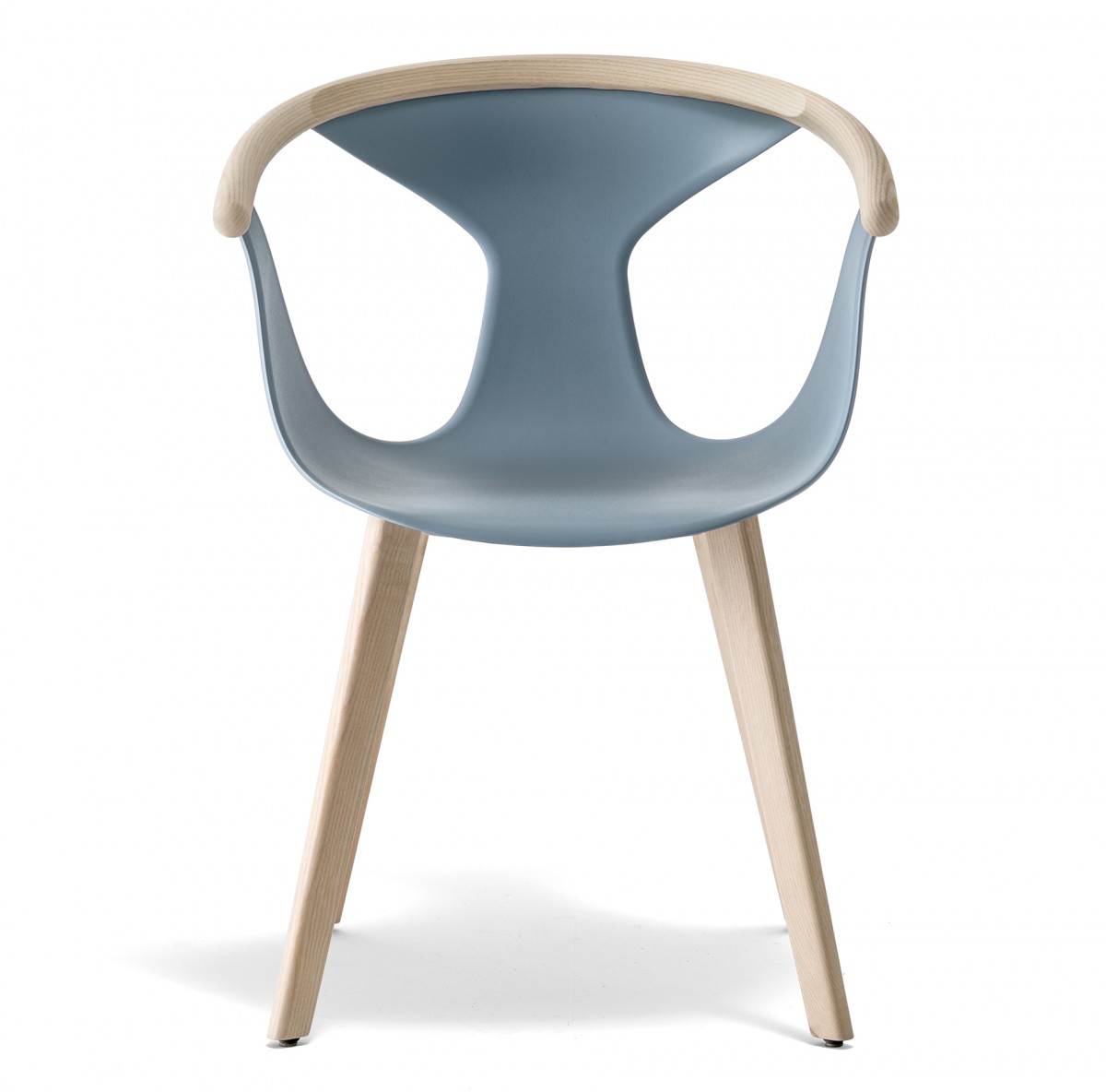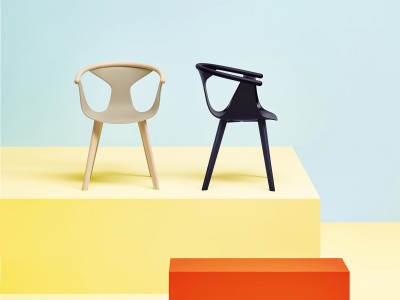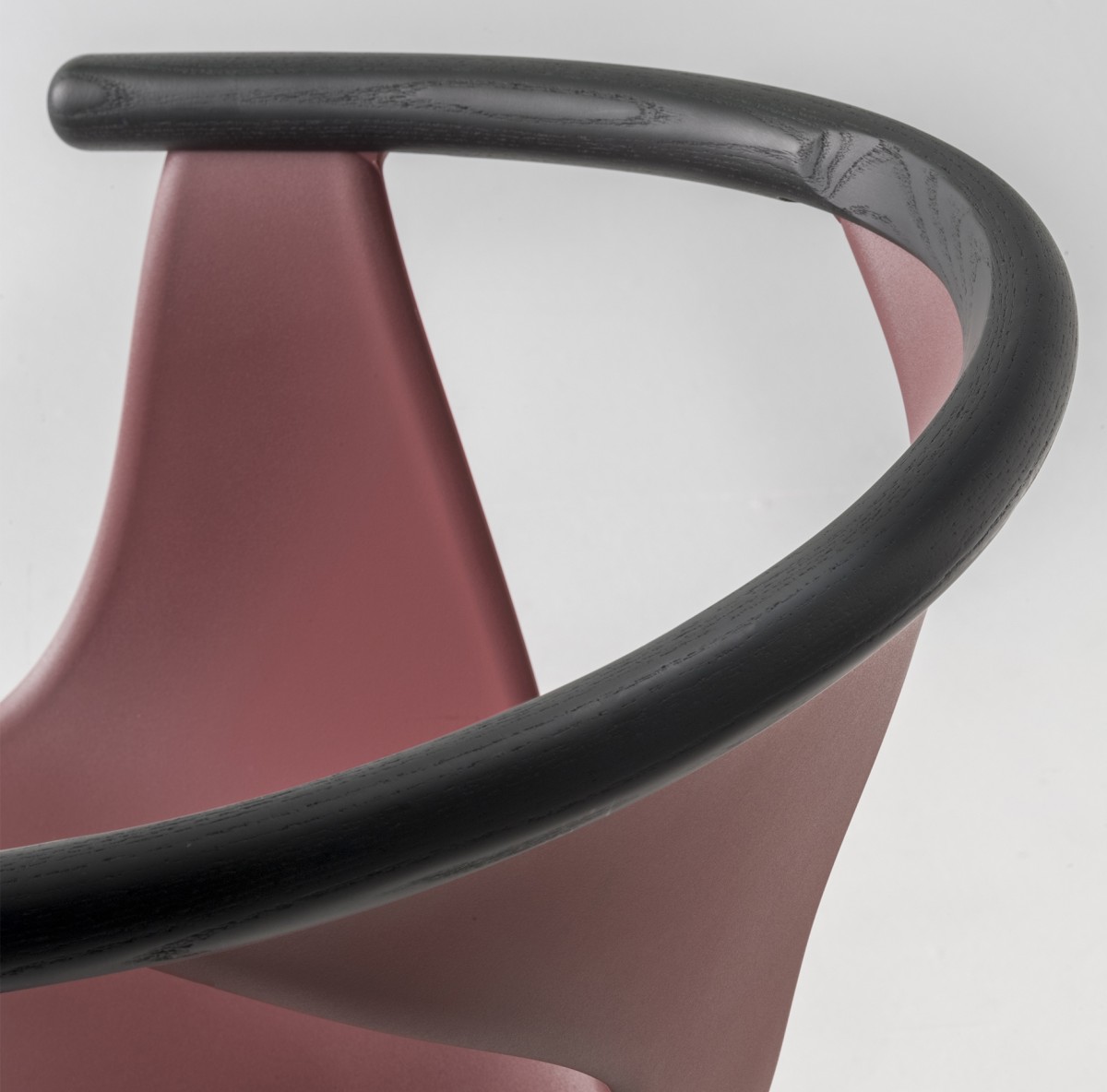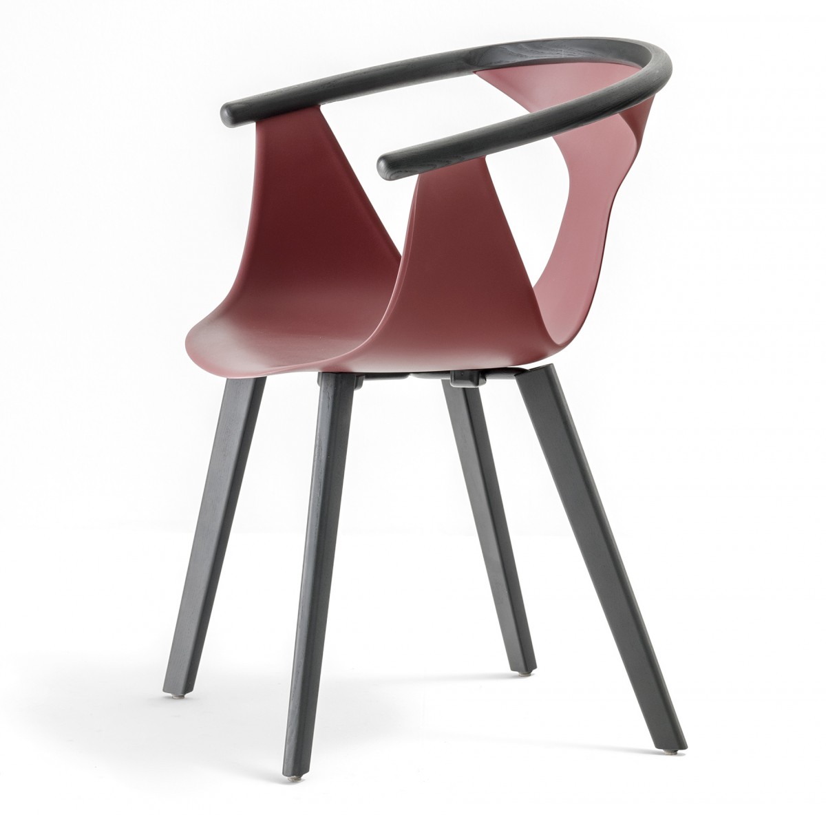 - Die Vielseitigkeit und Funktionalität der Kollektion wird durch mehrere Farbkombinationen zwischen dem Holz und der bequemen Schale gewährleistet , die mit Fuße aus Esche oder Stahlrohr kombiniert werden können, die letzte Version ist stapelbar.