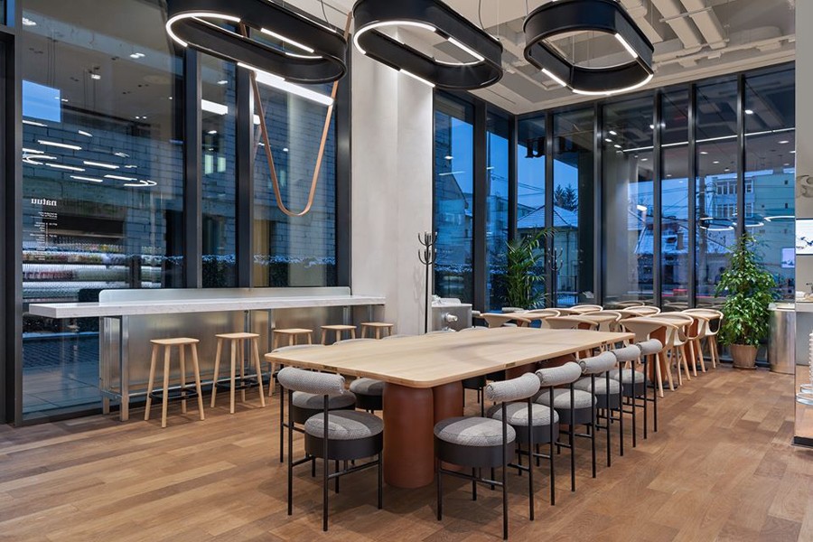 - Eine Architektur, von einer harmonischen Mischung aus Materialien und Kontraste zwischen geometrischen Linien definiert.