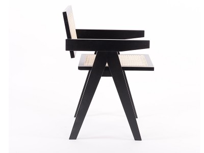 - Die Verwendung von Schilfrohr in der Rückenlehne und im Sitz trägt nicht nur zu seiner Ästhetik bei, sondern verleiht ihm auch ein natürliches und zeitloses Element, das Geo zu einer herausragenden Wahl für alle macht, die eine Mischung aus Modernität und klassischem Charme in ihren Sitzgruppen suchen.