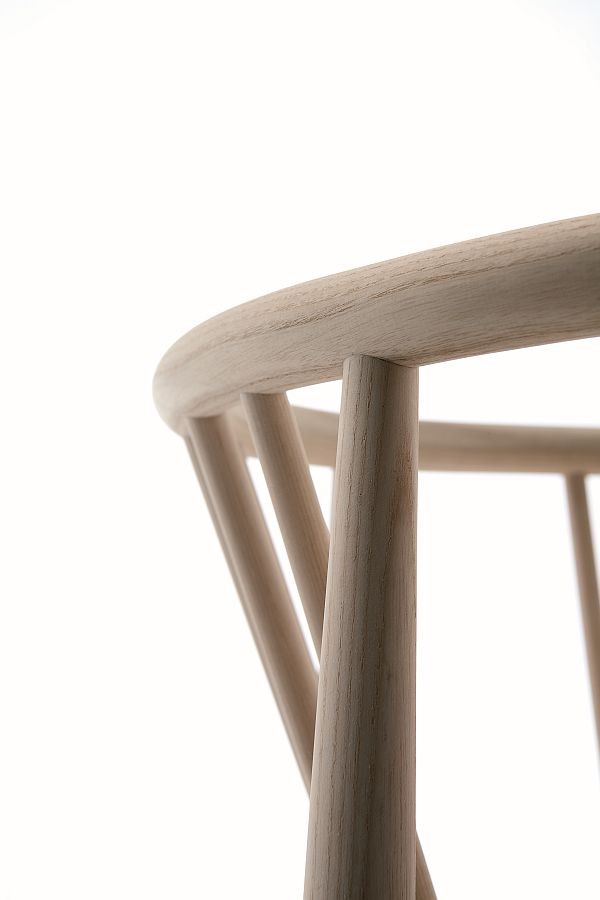 - Eschenholzrahmen mit aufrechter Sitzfläche.