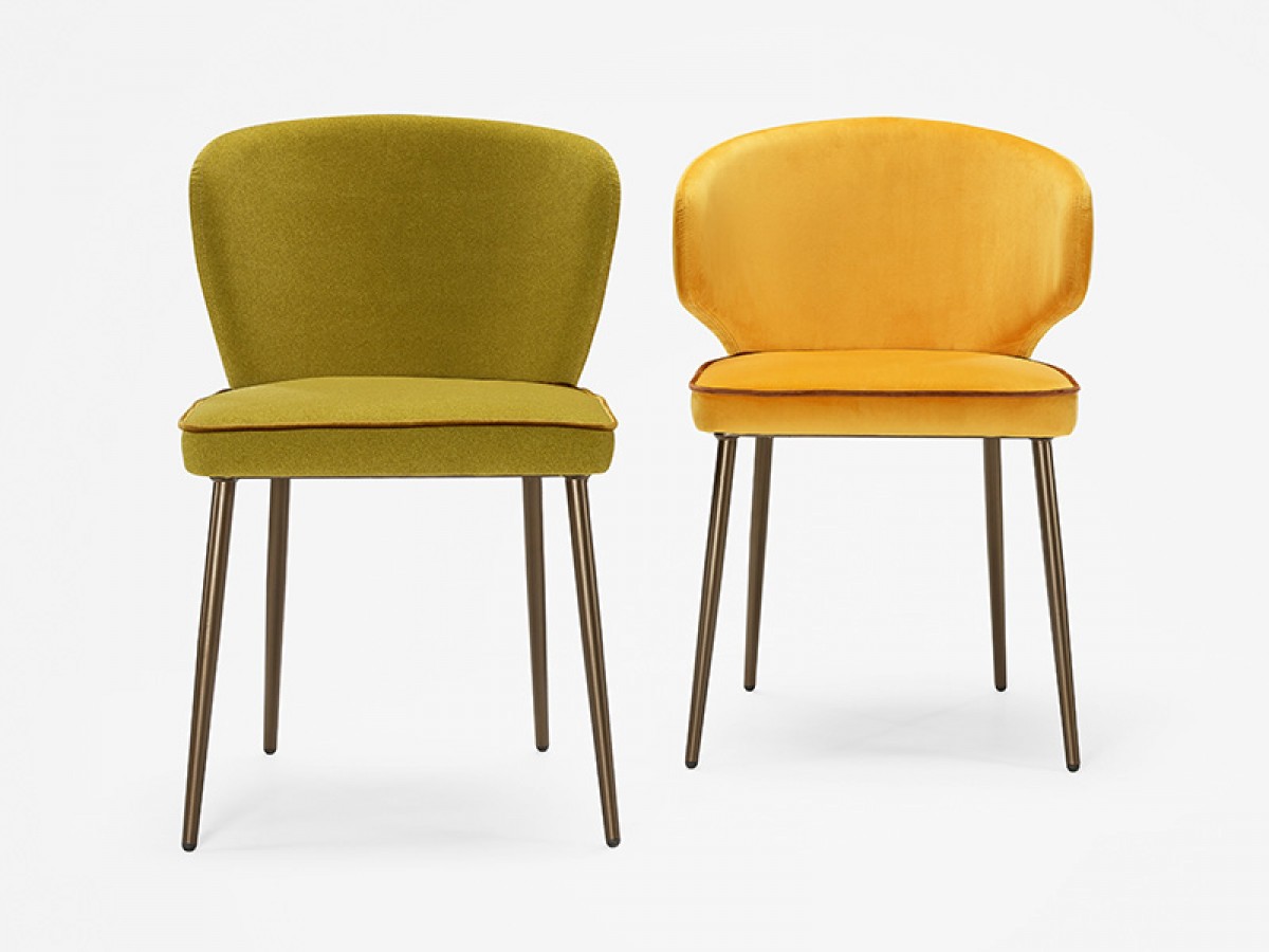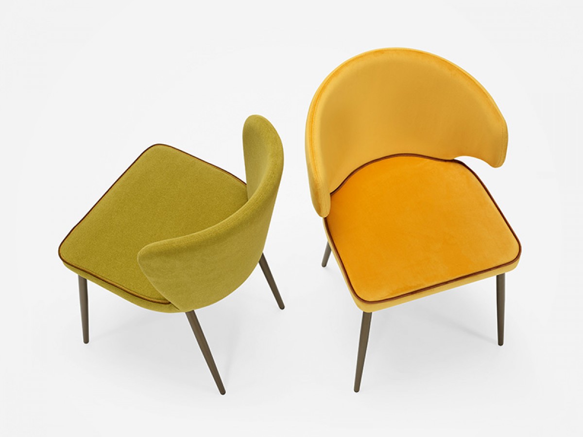 - Gepolsterter restaurant stuhl mit armleuningen, mit lakiertem oder verchromtem gestell.