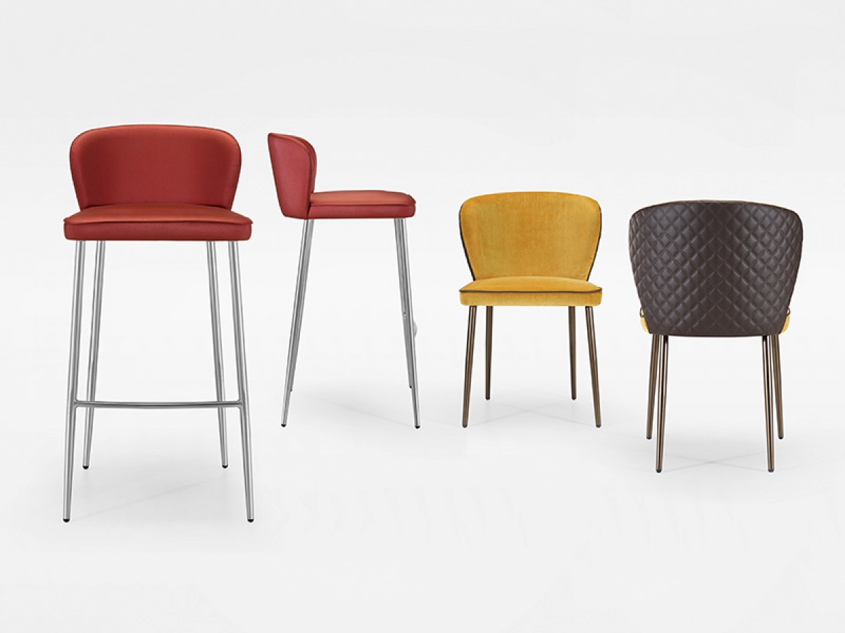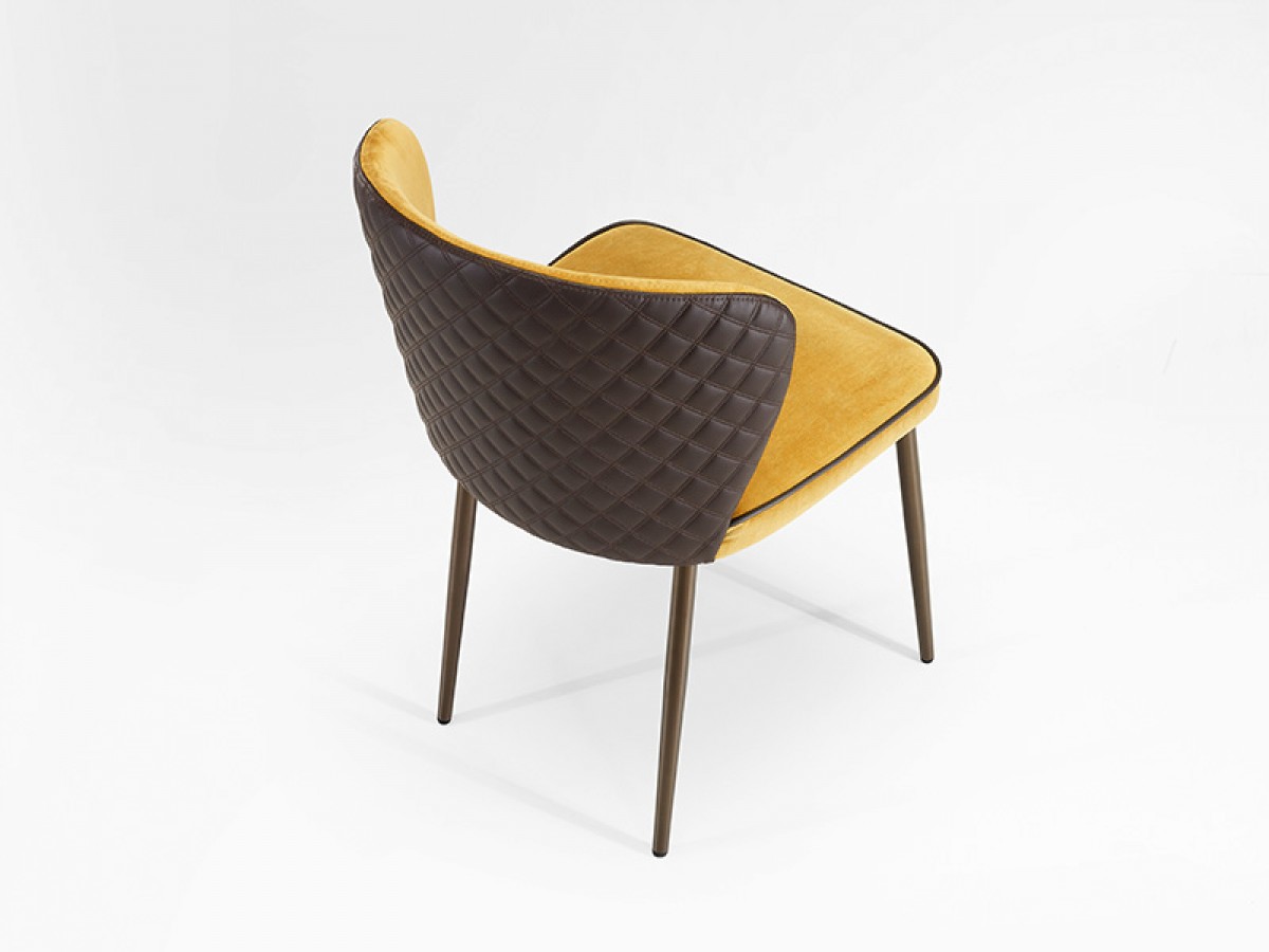 - Gepolsterter restaurant stuhl mit armleuningen, mit lakiertem oder verchromtem gestell.