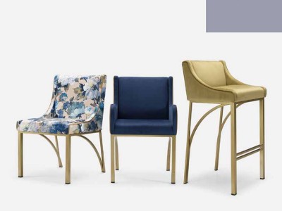 - Gepolsterter restaurant stuhl mit armleuningen, mit lakiertem oder verchromtem gestell.