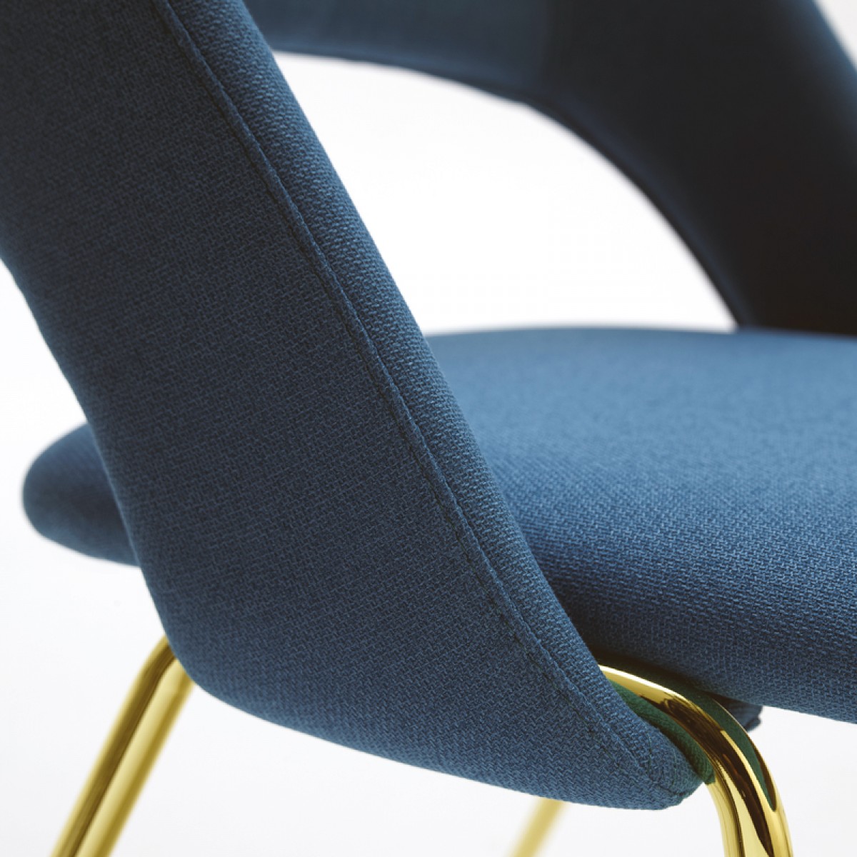 - Robust: Dieser Stuhl besteht aus einem Stahlrahmen.