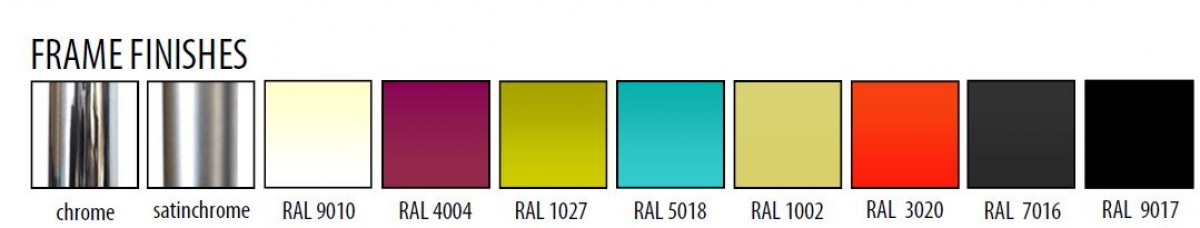 - Powdercoated in RAL colors, chromed or satinated frame.