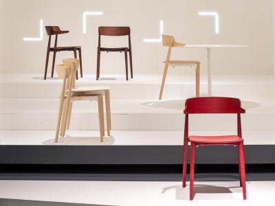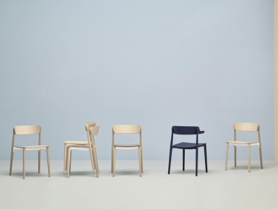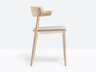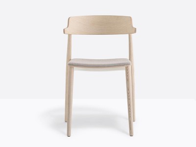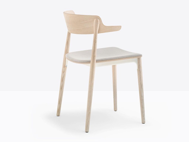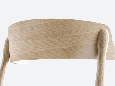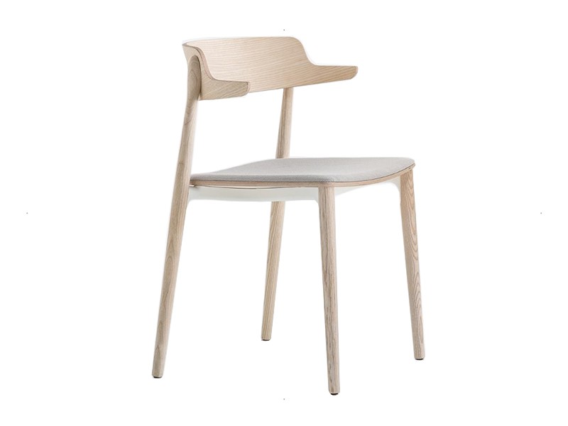 - Sessel aus Sperrholz mit Eschenfurnier, gepolstertem Sitz und geformter Rückenlehne, die es ermöglicht, ihn auf den Tisch zu hängen.