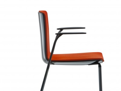 - Armlehnstuhl Stuhl Sitzschale aus Polycarbonat und gepolstertem Sitz.