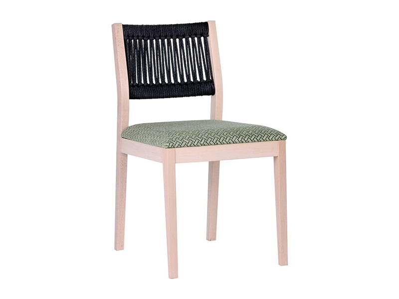 - Gepolsterter Buchenholzstuhl mit geflochtener Rückenlehne.