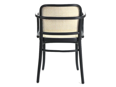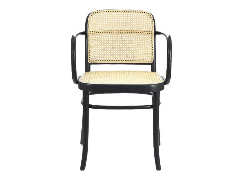 - Dieses Modell verfügt über einen handgewebten Sitz und eine Rückenlehne aus Rohrgeflecht, die zusätzlichen Komfort und Leichtigkeit bieten.