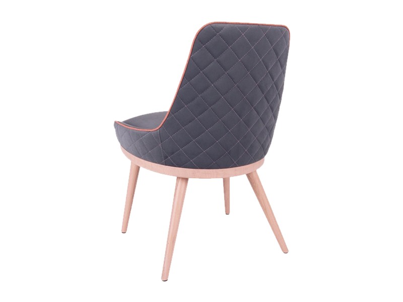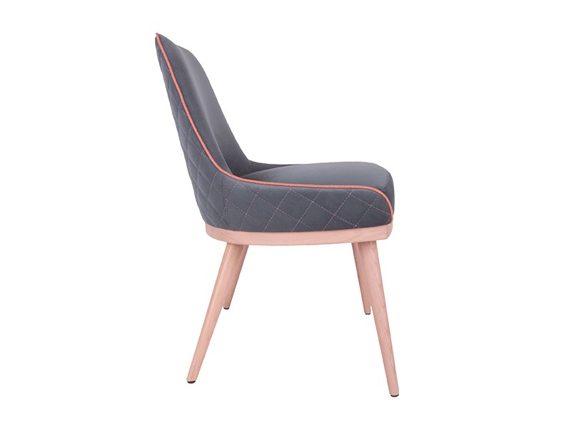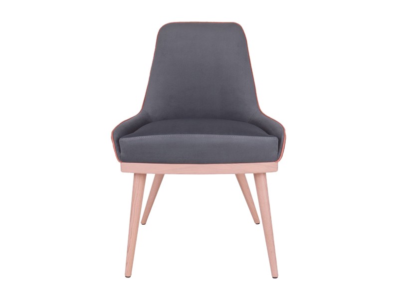 - Gepolsterter Holzrahmenstuhl, mit Rahmen erhältlich in naturbelassenem Holz oder verschiedenen Oberflächen.