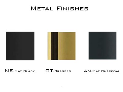 - Verfügbar in 2 Farben, mattschwarz, graphite matt, Gestellfarben, Füße: messing