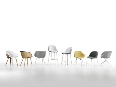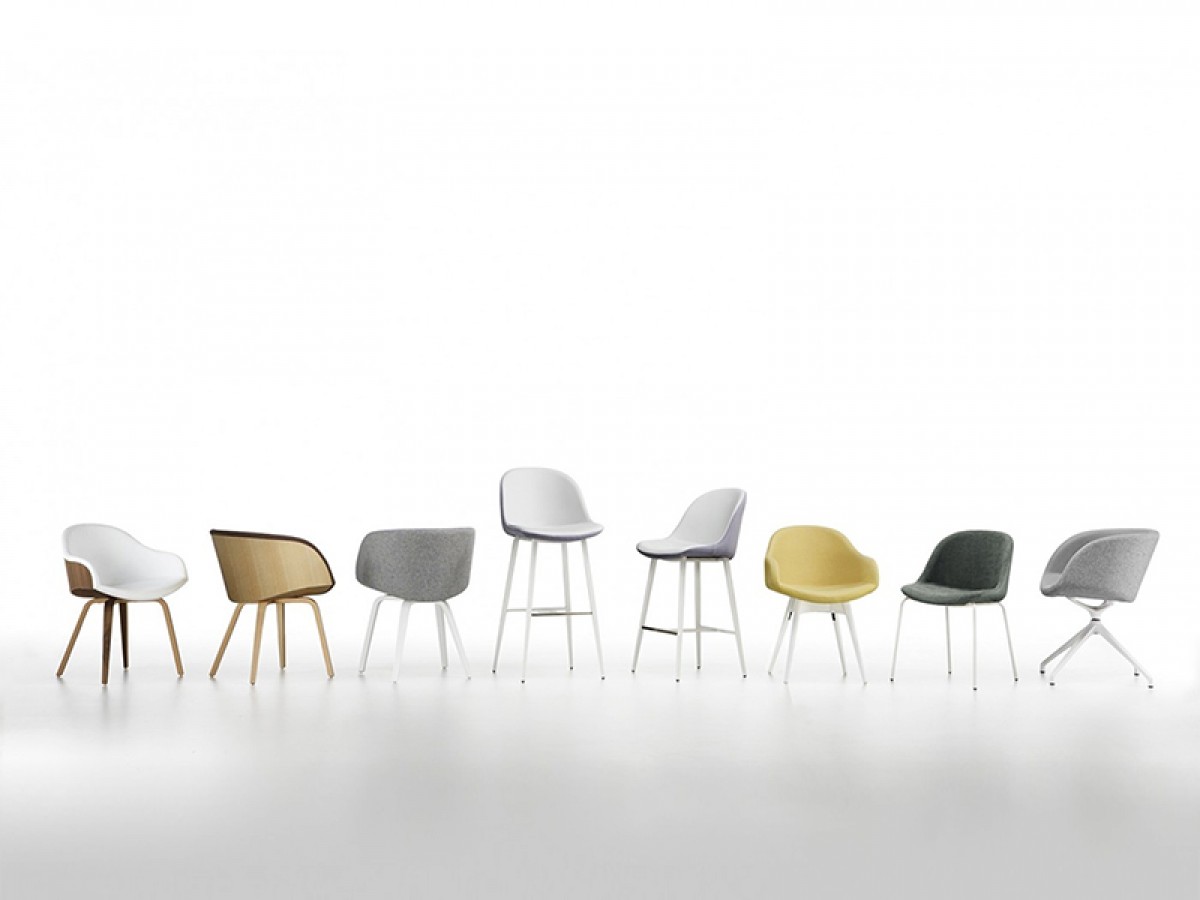 - Sitzschale aus Leder, Kunstleder oder verschiedenen Stoffen.