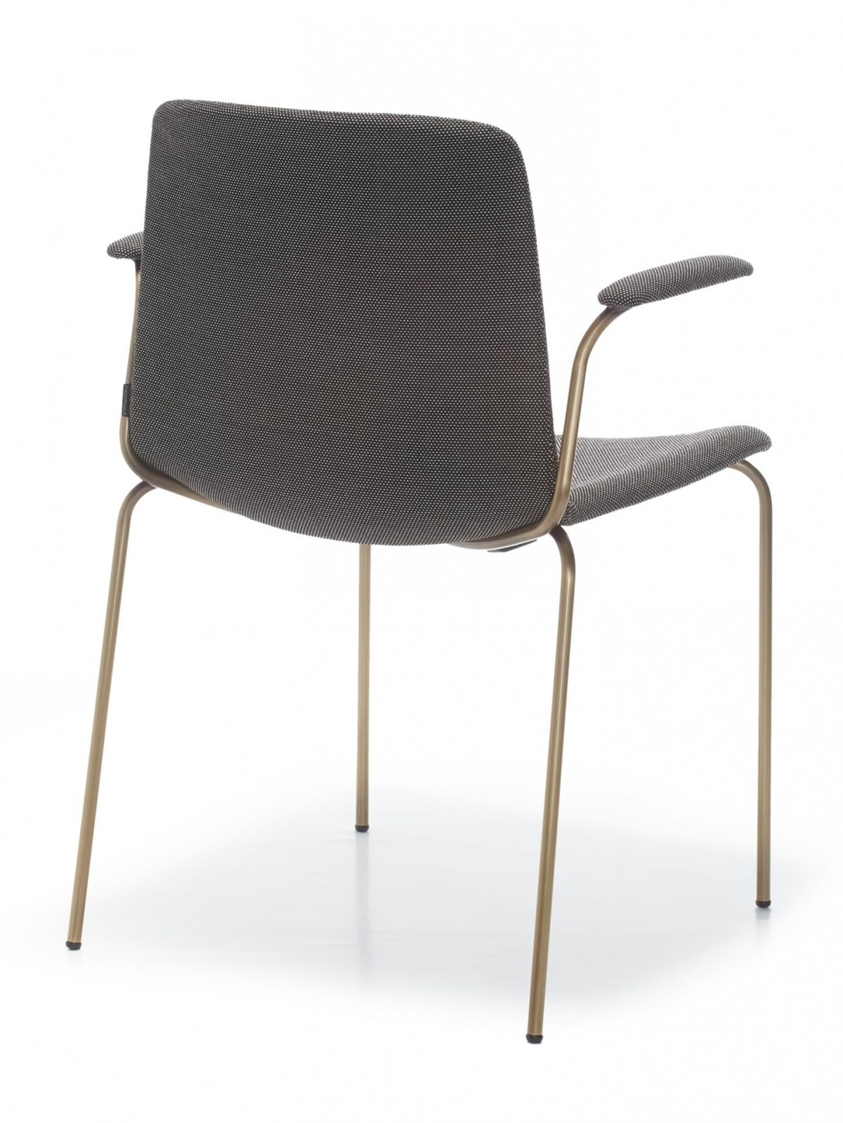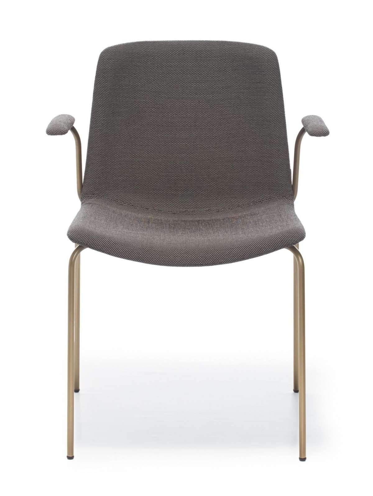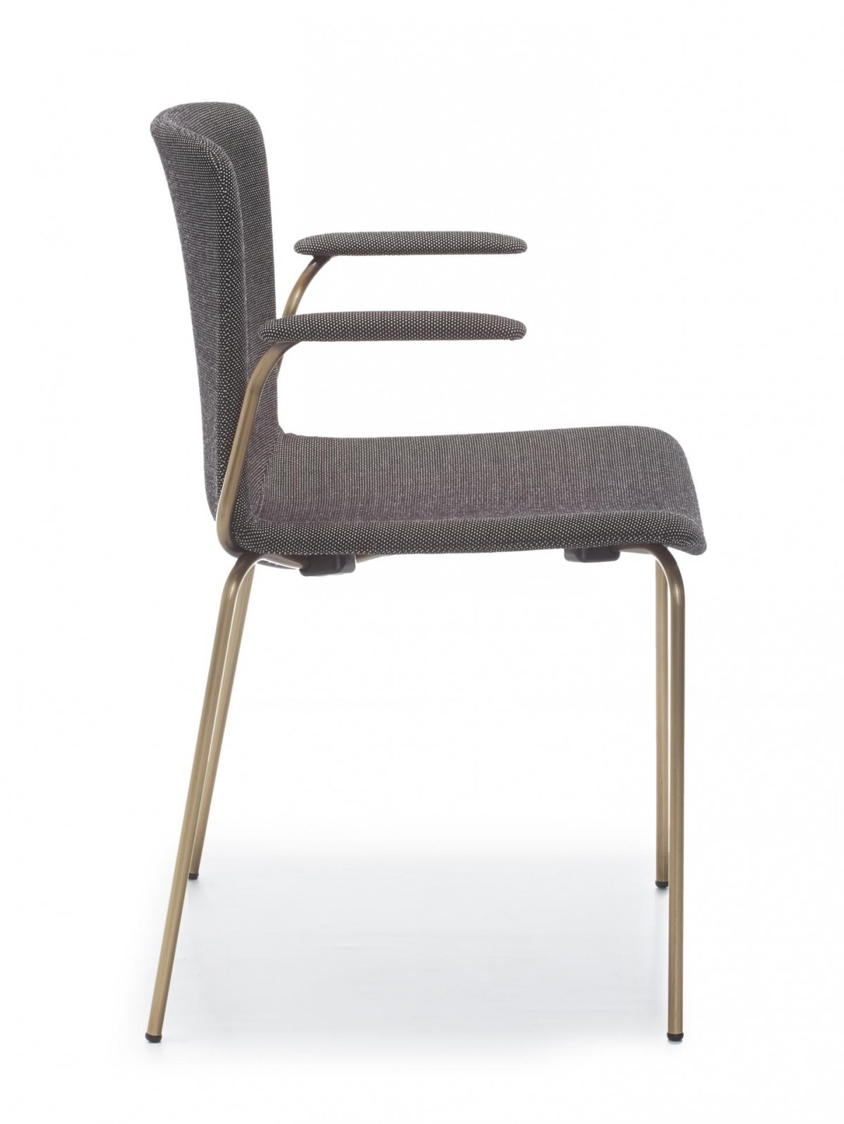 - Der Tweet Soft Stuhl, stapelbar, hat eine gepolsterte Schale aus Stoff oder Kunstleder und eine Struktur aus Stahlrohr Ø14 mm.