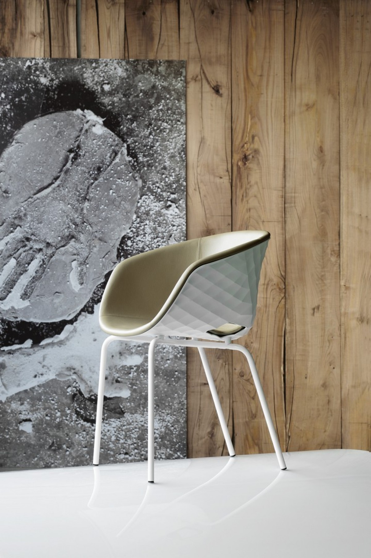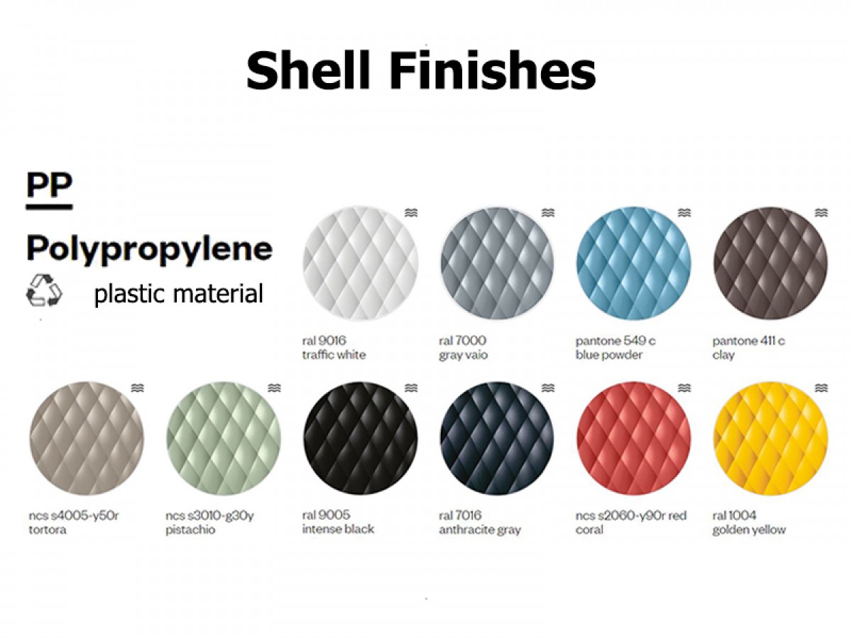 - Polypropylene and upholstered shell.