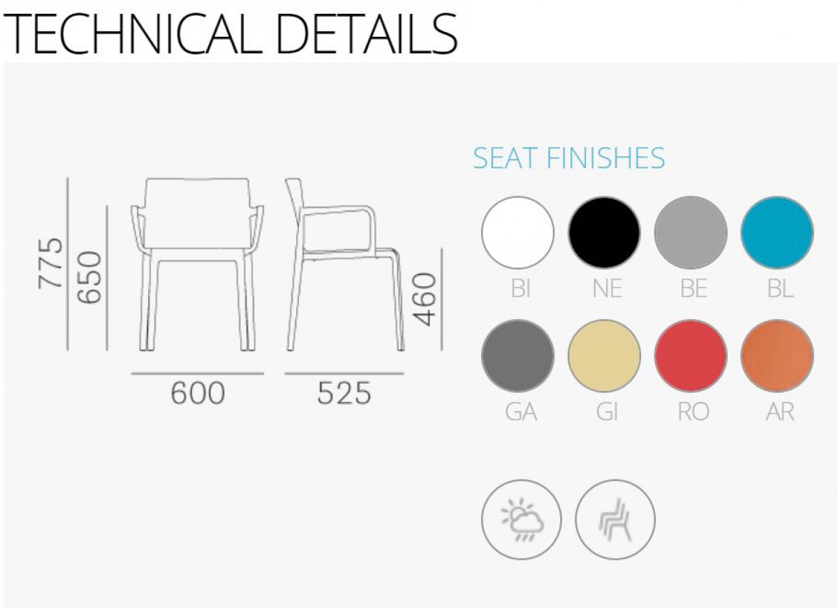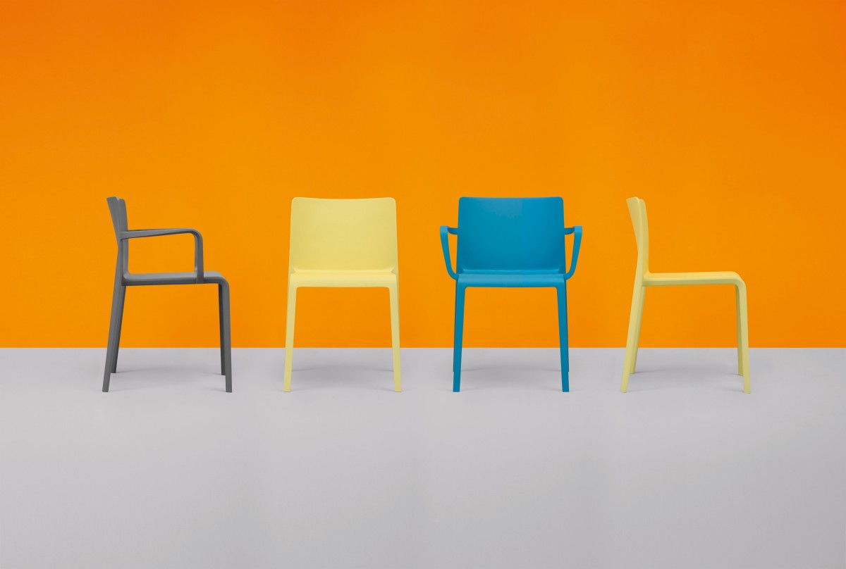- Der Sessel Volt ist aus Polypropylen aus Spritzguss -auch gas air moulding genannt- hergestellt, verstärkt durch Glasfasern.