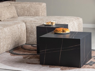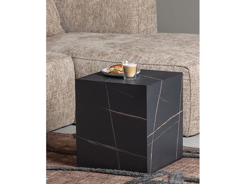 - Der Beistelltisch Bond ist mit seiner flachen quadratischen Form und den sechs geschlossenen Seiten eine vielseitige Option. Er hat ein hohles Inneres, wodurch das Gewicht auf 17 kg begrenzt ist.