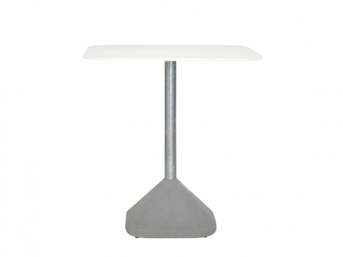 - Die Form des Tisches ist der visuell optimal ausgewoge Gegenpol zum gewichtigen Fuß. Die Mittelstütze aus Stahl steht in spannungsvollem Kontrast zum körnigen Betonelement.