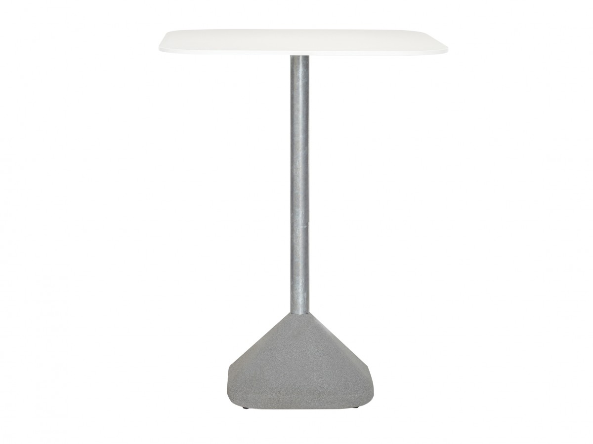 - Die Form des Tisches ist der visuell optimal ausgewoge Gegenpol zum gewichtigen Fuß. Die Mittelstütze aus Stahl steht in spannungsvollem Kontrast zum körnigen Betonelement.