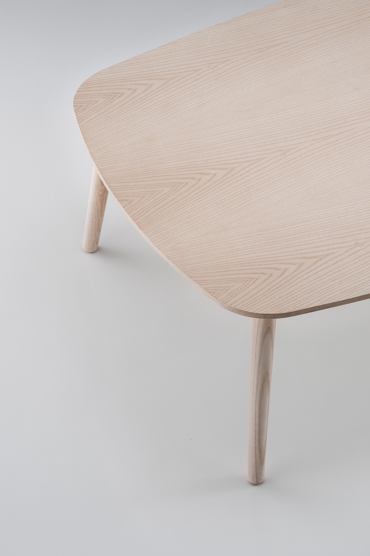 - Couchtisch mit Platte aus Eschenfurnier, Beine aus Eschenholz.
