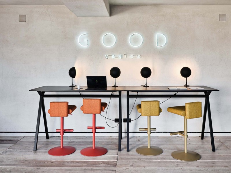 - Der Schreibtisch Dama ist eine vielseitige und praktische Lösung, um Ihre Arbeit zu verbessern. Die Beine und die Struktur dieses Schreibtisches sind aus lackiertem Stahl und bilden eine robuste und langlebige Grundlage für den Arbeitsplatz. Die Beine schließen bündig mit der Tischplatte ab und sorgen so für ein nahtloses und schlankes Erscheinungsbild.