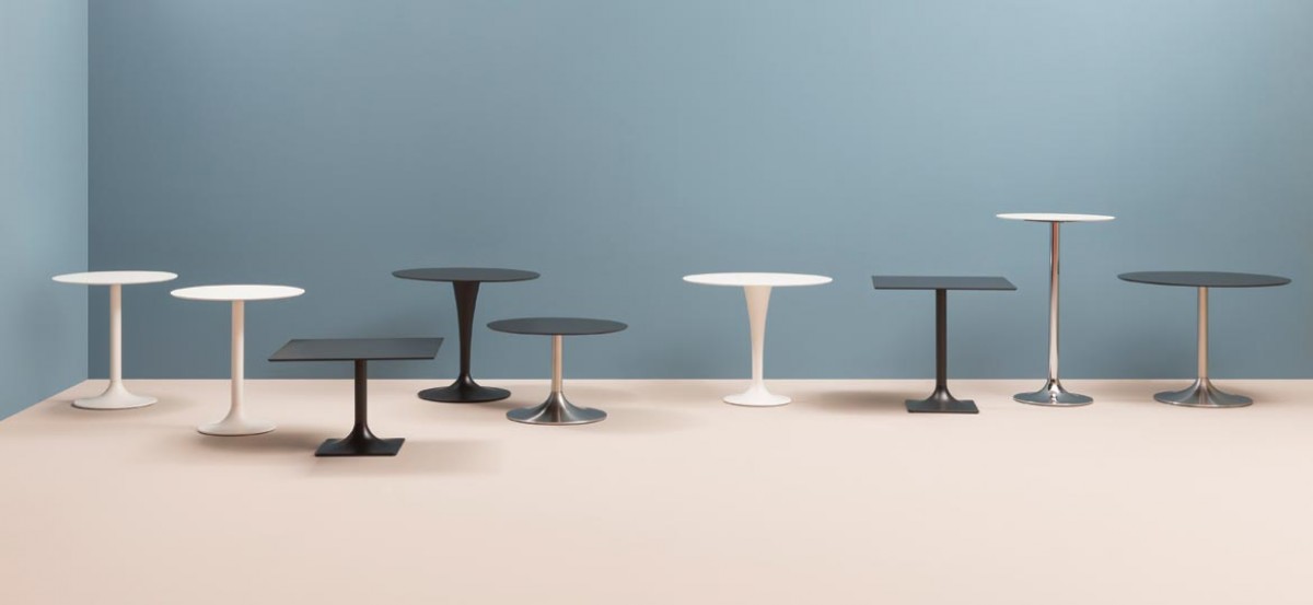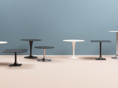 - Dream Tischgestell, sandgestrahlter Sockel aus Gusseisen 400x400 mm und Edelstahlsäule.