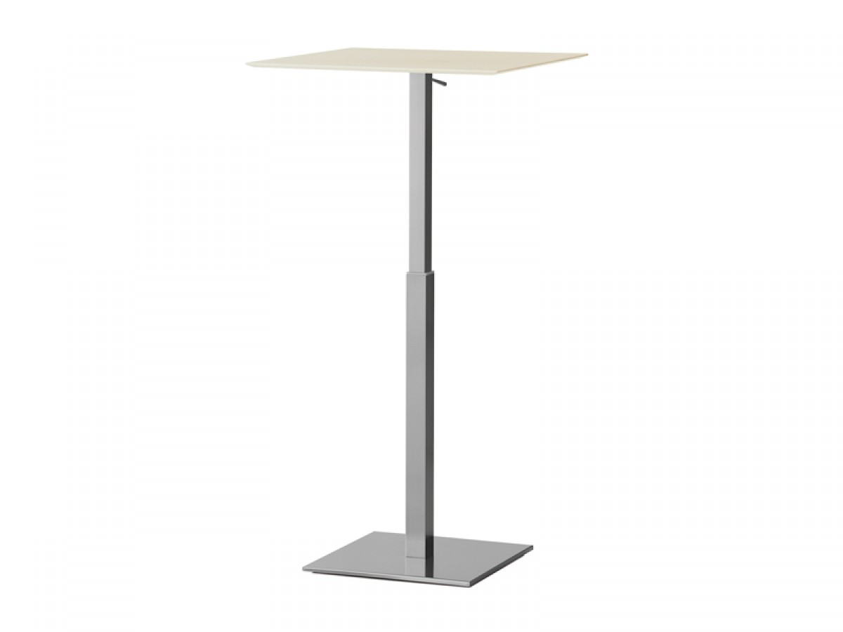 - Inox Tischgestell, Barhöhe mit Säule 50x50 mm und Sockel aus Edelstahl matt.