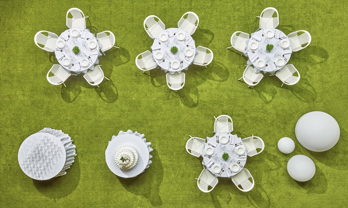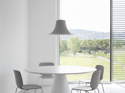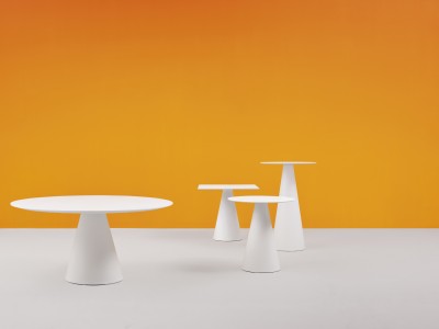 - Die Basis von Ikon BIG besteht aus Polypropylen, komplettiert durch die Tischplatte aus Laminat (30 mm stark) oder lackiertem MDF mit beschwerter Basis.