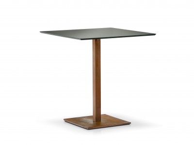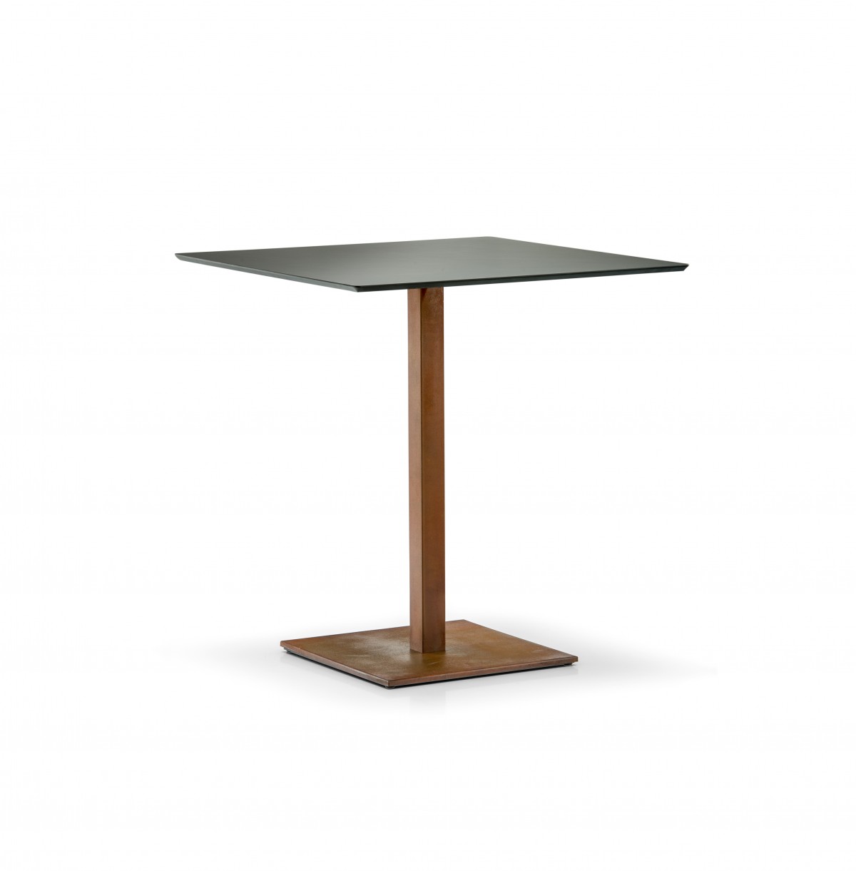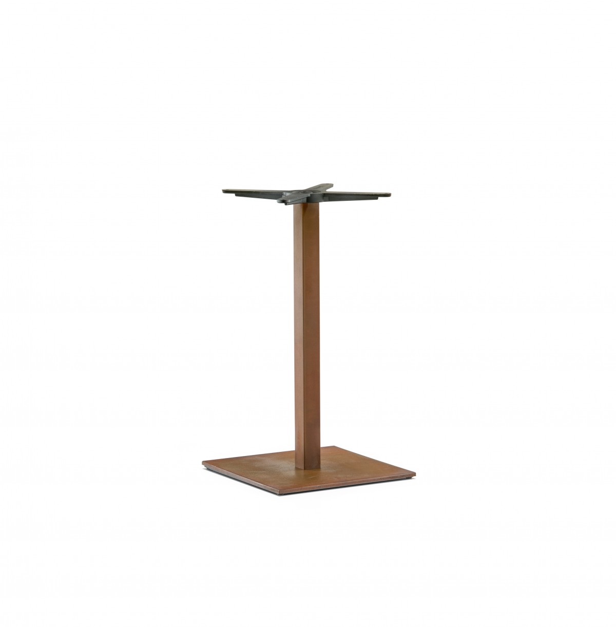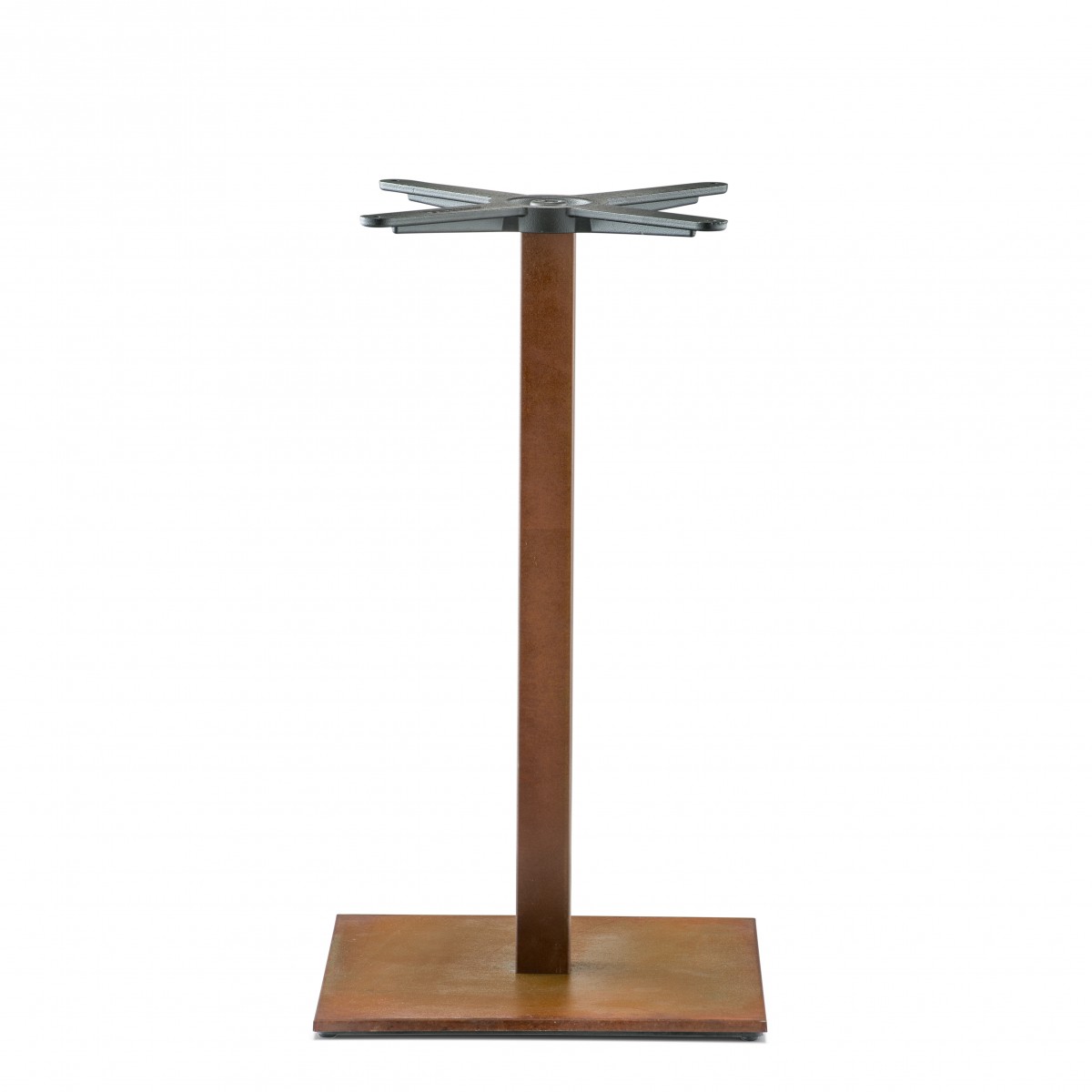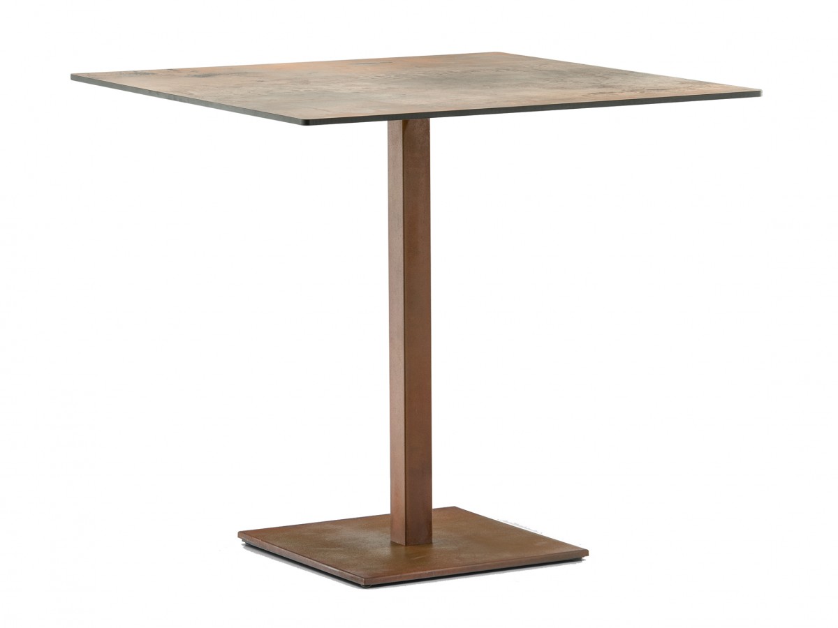 - Inox Tischfuß, Boden aus gebürstetem Edelstahl 400x400 mm mit Säule 50x50 mm mit einem Vintage-Rost-Look.