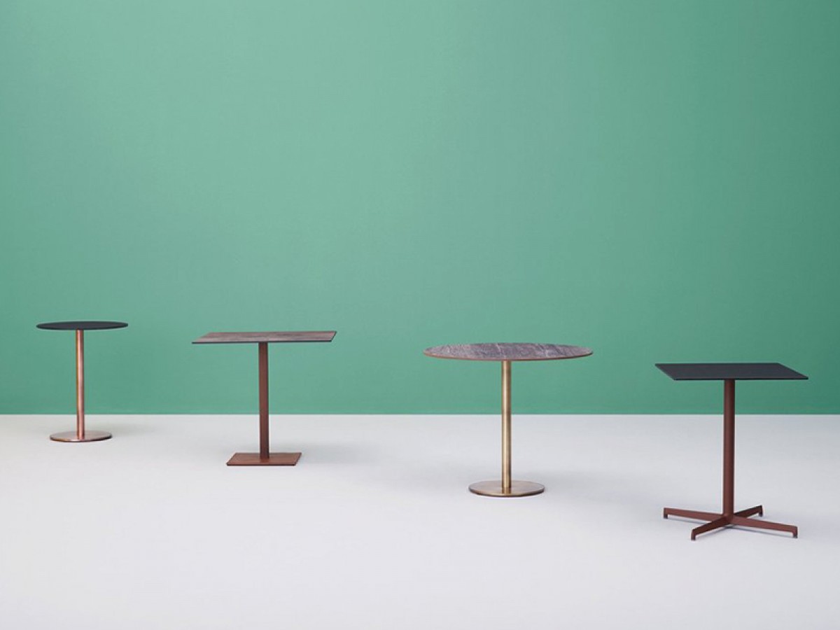 - Tischgestell aus Inox, Gestell aus gebürstetem Edelstahl mit Säule 50x50 mm.