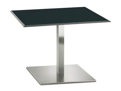- Inox Tischgestell, quadratischer Sockel aus Edelstahl matt mit Rohr 8x8cm.