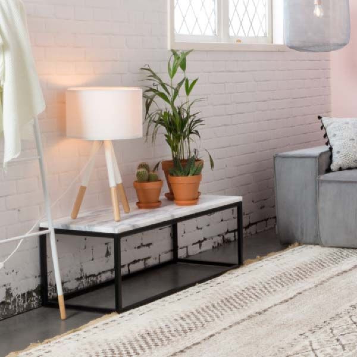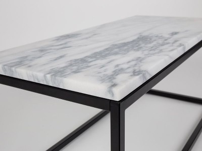 - Couchtisch mit Kastenrahmen aus Stahl und Tischplatte aus weißem Marmor.