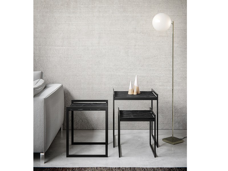 - Diese Beistelltische haben ein Gestell aus Stahl und eine Platte aus HPL, die in verschiedenen Formen und Farben erhältlich ist.