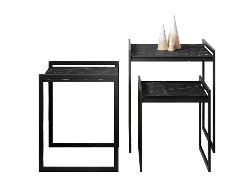 - Eine Kollektion von drei Kaffeetischen mit unterschiedlichen Abmessungen: